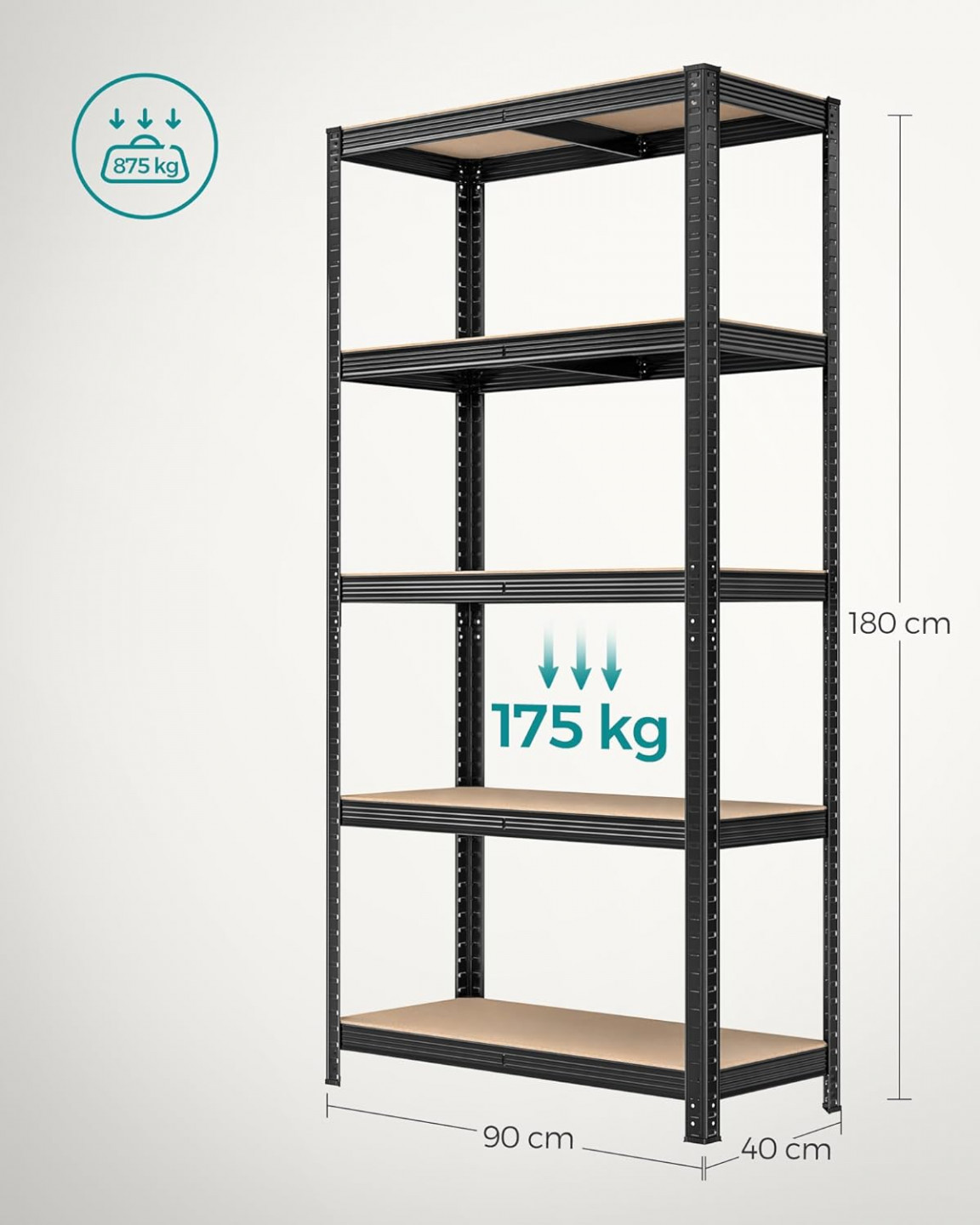 Nastavitelný pětipatrový regál sada 2ks 180 x 90 x 40 cm | černý