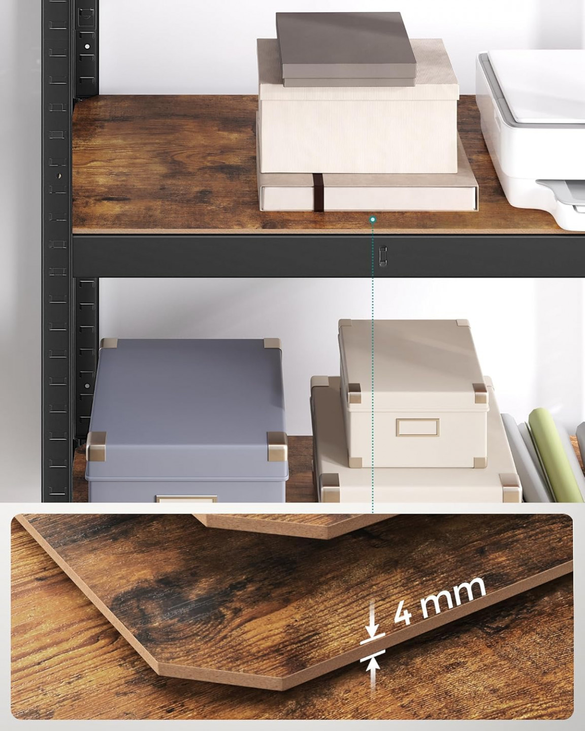 černý rám v kombinaci s hnědými policemi, tento policový regál, se dobře hodí k vašemu dalšímu nábytku. Poličky se shora dolů rozšiřují a nabízejí spoustu prostoru pro kreativitu a zároveň plně využívají prostor, ideální pro uložení jakýchkoli věcí, které chcete sbírat a vystavovat.