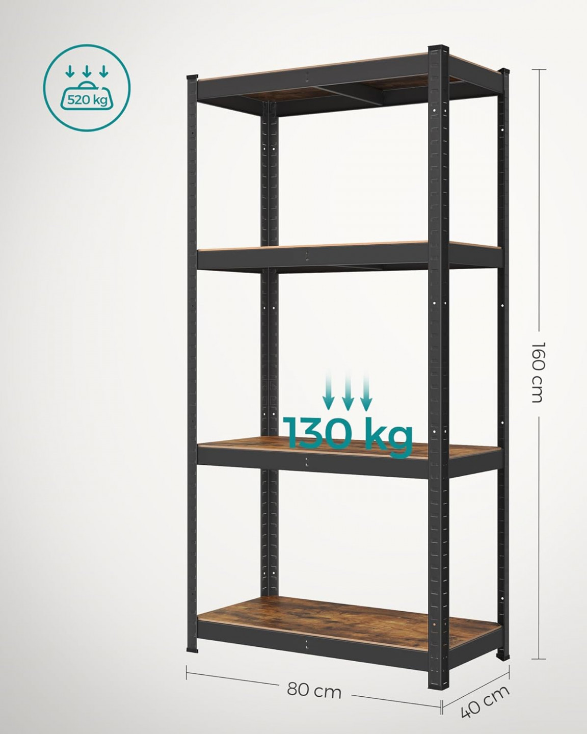 Nastavitelný úložný regál 40 x 80 x 160 cm | hnědý / černý