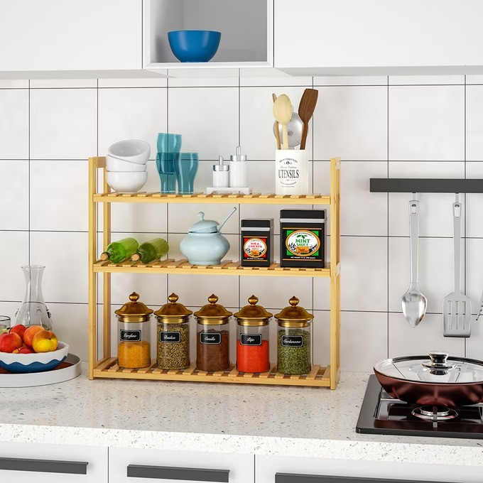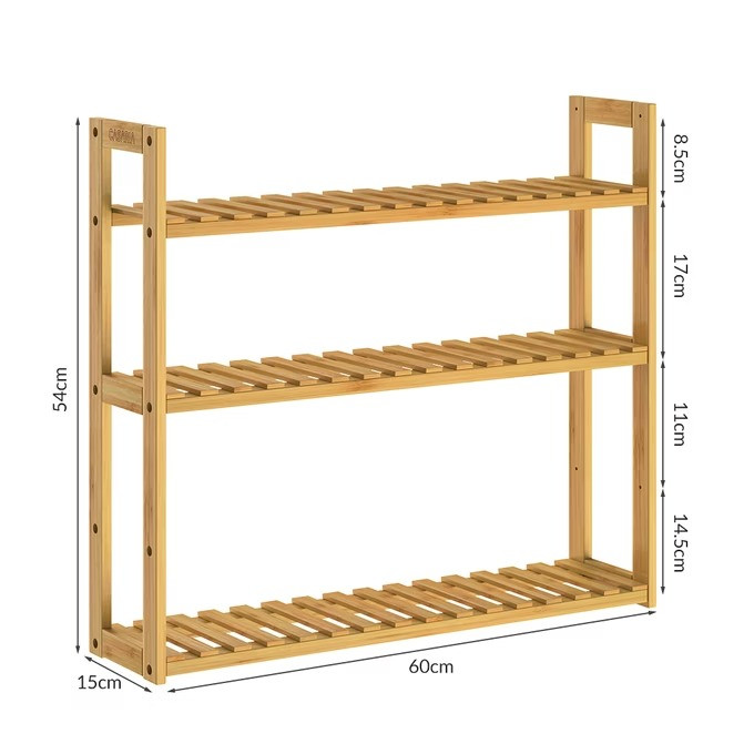 2 v 1 nástěnná a stojící police z bambusu - vysoká kvalita s nadčasovým designem! Tato robustní police vyrobená z udržitelného a ekologického bambusu unese zatížení až 30 kg . Každá police unese až 10 kg. Díky této vysoké nosnosti na ni můžete bez problémů umístit i knihy. Tato police je potažena bezbarvým lakem , takže je ideální do místností s určitou vlhkostí. Poličku lze použít jako prostorově úspornou nástěnnou poličku nebo jako volně stojící koupelnovou poličku . Je také ideální jako botník, kuchyňská polička nebo polička do sklepa a mnoho dalšího.