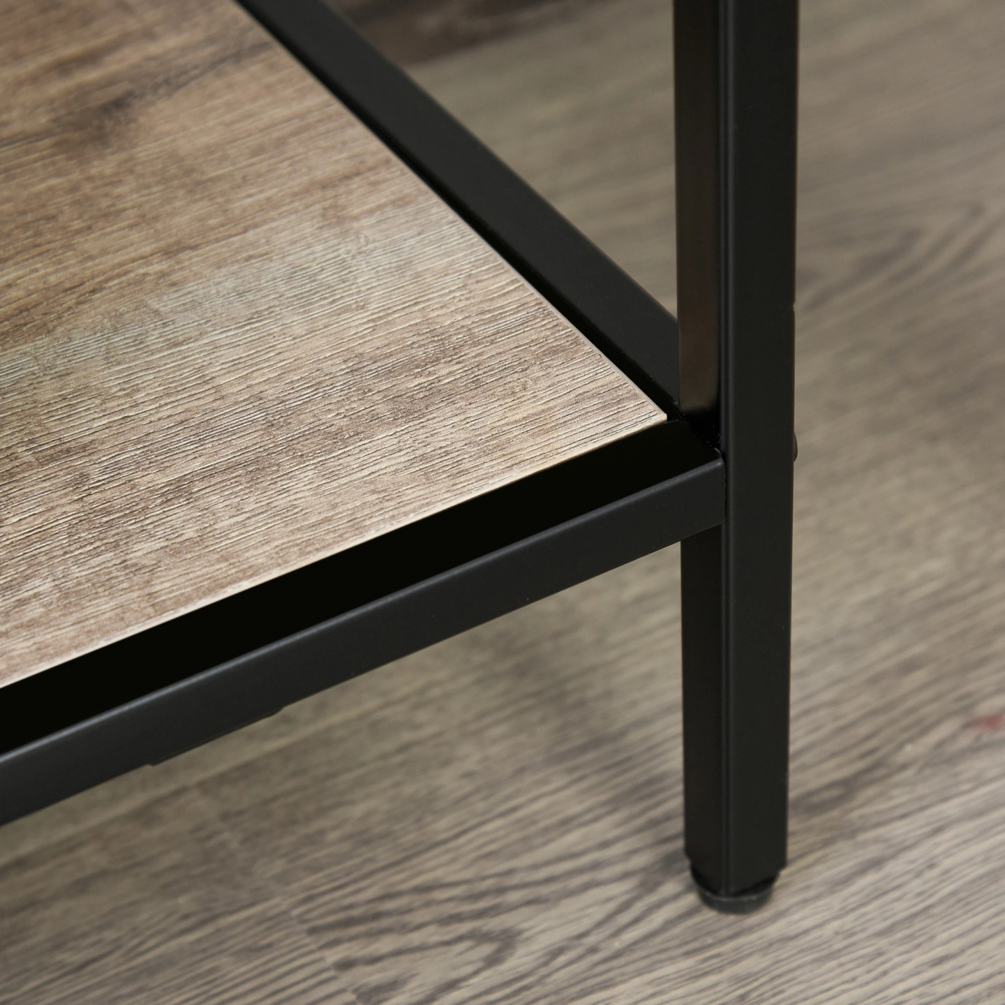 Jste připraveni kreativně vystavit své sbírky? Tento úložný regál je ideální volbou. Jedinečný asymetrický design a dvoubarevná konstrukce z rustikálního dubového dřeva a hladké tmavé barvy jí pomáhají působit odvážně v každém prostředí. Pět otevřených polic poskytuje dostatek úložného prostoru. Regál je vyroben z robustního kovového rámu a masivní dřevotřískové desky P2 a je odolným a atraktivním doplňkem obývacích pokojů nebo domácích kanceláří.
