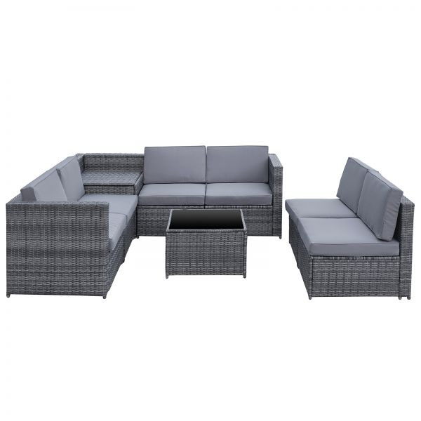 Luxusná priestranná ratanová sedacia súprava v sebe spája štýl a praktickosť a stane sa ústredným prvkom vašej záhrady alebo terasy. Celý set nábytku je určený pre celoročné používanie vonku. Pretože je vyrobená z nepremokavého PE ratanu, odolného voči poveternostným vplyvom, dá sa táto sedacia súprava ľahko čistiť, je vysoko odolná a vhodná pre každodenné použitie. Sedacia súprava je opatrená robustnými oceľovými rámami, ošetrenými práškovým lakom, ktoré sú vysoko odolné.