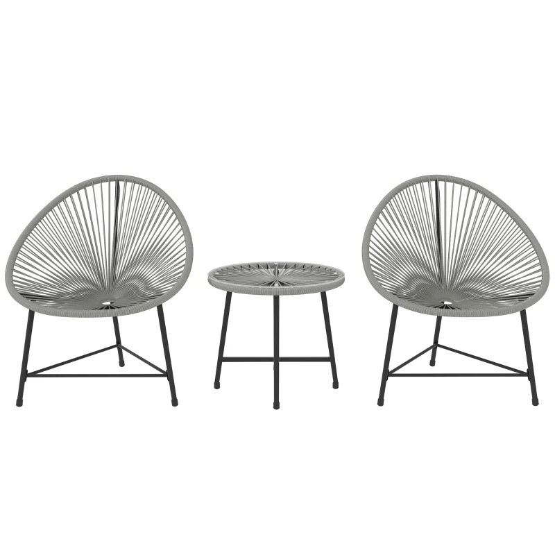Relaxujte venku s touto elegantní sadou balkonového nábytku, která obsahuje dvě oválná křesla ve stylu Acapulco a odpovídající konferenční stolek. Pružné plastové ratanové provazy s dutým vyplétaným designem bistro setu poskytují chladné a pohodlné sezení. Konferenční stolek z tvrzeného skla je elegantní a snadno se čistí. Ocelový rám a nastavitelné podnožky zaručují stabilitu a oporu. Užijte si pohodlí této stylové soupravy balkonového nábytku.