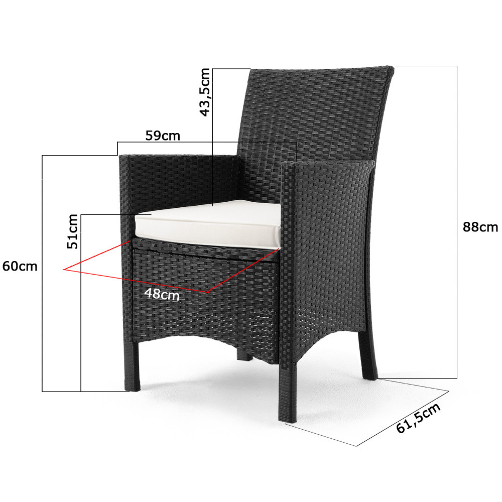 Luxusný ratanový set presvedčí nielen svojím elegantným vzhľadom, ale aj dlhou životnosťou a odolnosťou voči slnečnému žiareniu. Táto súprava je nielen odolná voči poveternostným vplyvom, ale aj voči slnečnému žiareniu a chladu. Kvalitná drevená stolová doska je vyrobená z agátového dreva. Pohodlné vankúše na sedenie v béžovej farbe sú v súlade s ratanovou súpravou a sú vybavené zipsom na zadnej strane, a tak sa ľahko čistia. Aby bol povrch vankúšov chránený pred navlhnutím vodou alebo akýmkoľvek nápojom, sú impregnované.