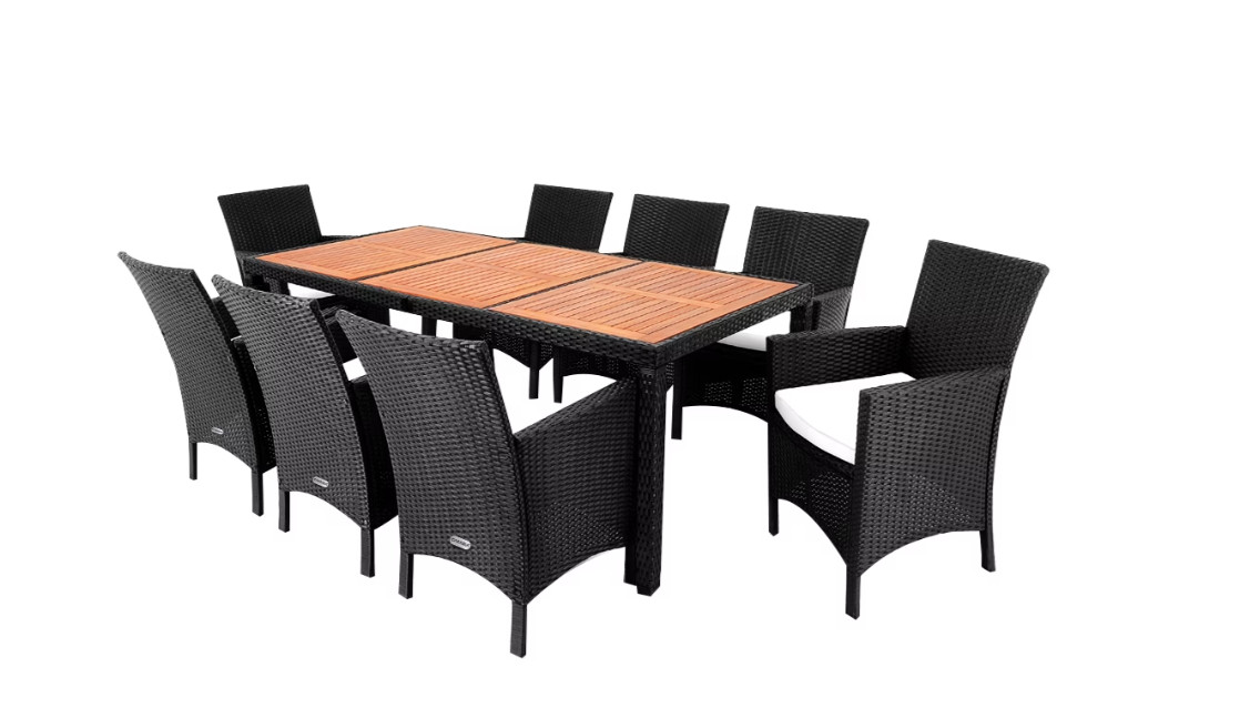 Zahradní sedací souprava Rome z polyratanu 9dílná | černá akáciová