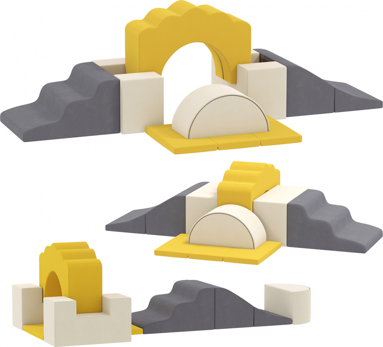 S touto sadou dětských pěnových bloků proměníte svůj domov v místnost objevů. Sedm dílků, jako jsou rampy nebo oblouky, podporuje motorickou koordinaci a kreativitu již od útlého věku. Jsou vyrobeny ze sametu a husté pěny, bez nebezpečných hran, a zaručují tak bezpečné a pohodlné prostředí. Snímatelné kryty navíc usnadňují čištění a jsou praktické pro vás i vaši rodinu.