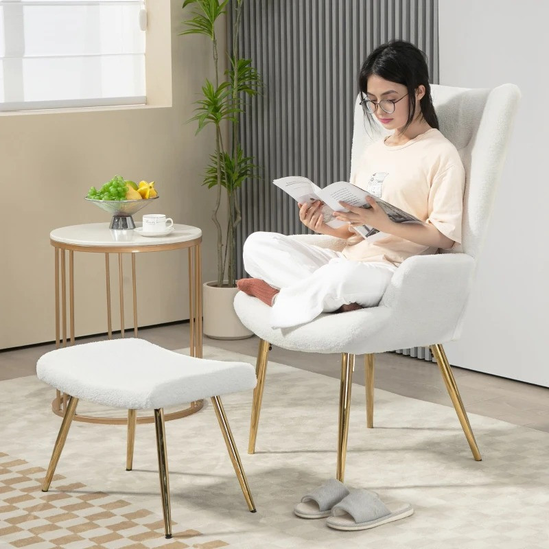 Křeslo s taburetem | bílé