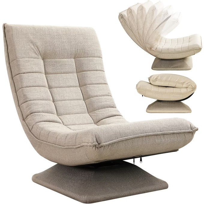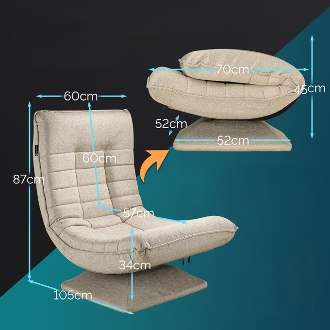 Toto čalouněné křeslo je skutečně všestranné: lze jej otáčet o 360 ° pro optimální polohu . Extra měkké polstrování o tloušťce 13 cm je obzvláště pohodlné a útulné. Potah je vyroben ze 100% polyesteru, díky čemuž je odolný, má dlouhou životnost, je odolný proti oděru a snadno se čistí. Pevná ocelová základna zajišťuje stabilitu a unese až 150 kg . Pokud se sedadlo nepoužívá, lze jej jedním pohybem složit a uskladnit, čímž se ušetří místo. Kryt základny je odnímatelný a snadno se čistí.