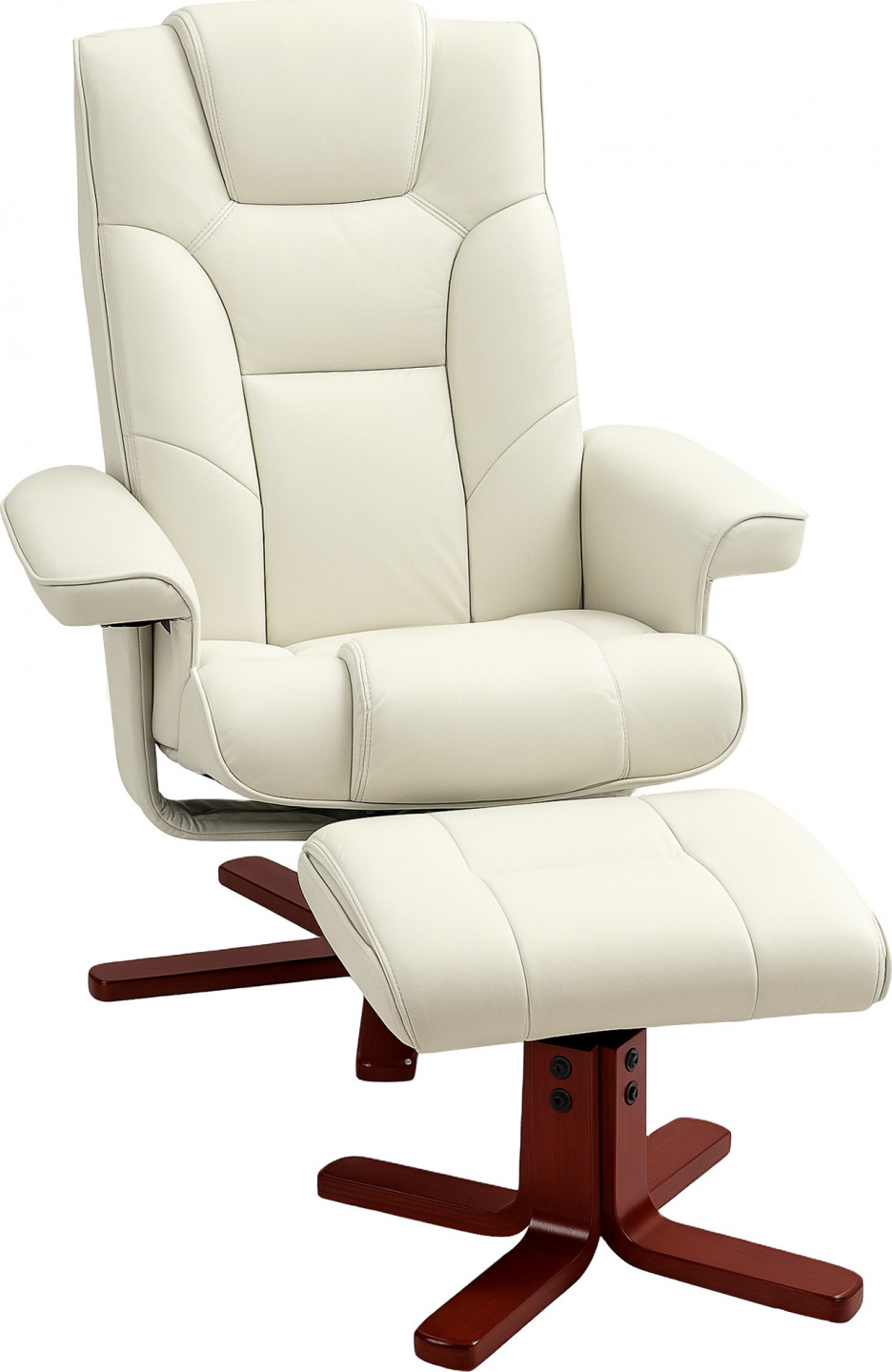 Relaxační křeslo s taburetem z imitace kůže | krémově bílé