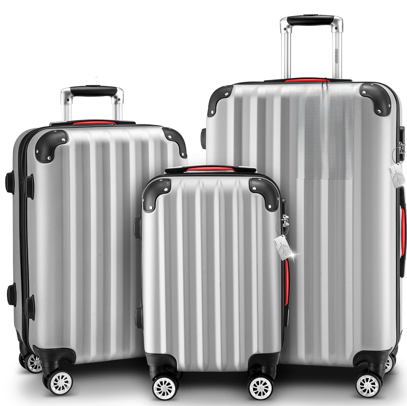 Sada 3 kusů kufrů s pevným pláštěm a kolečky 360° | stříbrná