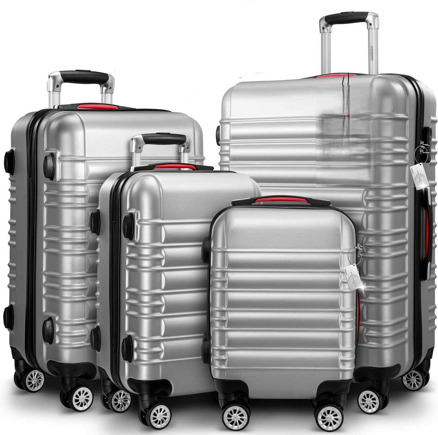 Sada 4 kusů kufrů s pevným pláštěm a kolečky 360° | stříbrná