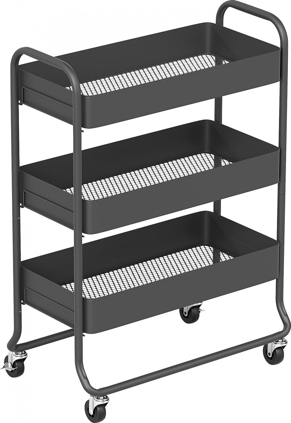 Zahlcuje vás nepořádek, který vám překáží v každodenním životě? Robustní postranní vozík s kolečky vám díky své třípatrové úložné jednotce vrátí pořádek a klid. Bez námahy uspořádáte vše od velkých lahví až po svačiny - vše na dosah a přehledně uložené. Jednoduše jej přivezte do jakékoliv místnosti a zaaretujte kolečka úložného vozíku, abyste získali bezpečný stojan. Váš všestranný domácí úložný partner, vyrobený tak, aby vydržel.