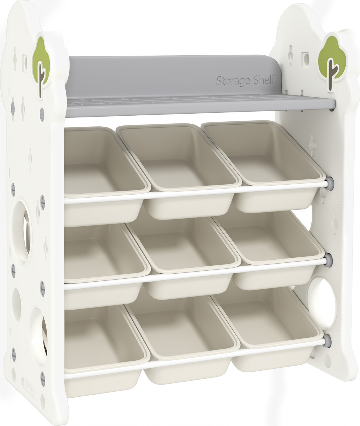 - Horní police a devět kontejnerů slouží k uspořádání hraček, knih a dalších předmětů.