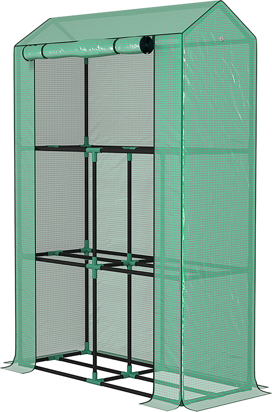 Tento fóliovník se třemi úrovněmi a policemi nabízí dostatek prostoru pro květináče a pěstební misky a je obklopen robustním plastovým krytem, který chrání rostliny před poškozením UV zářením a poskytuje jim sluneční světlo. Rolovací dveře se zipem usnadňují přístup do chladicího rámu a zajišťují vynikající větrání. Ideální rajčatový domek pro každého, kdo si chce vytvořit prosperující přenosnou zahradní oázu!