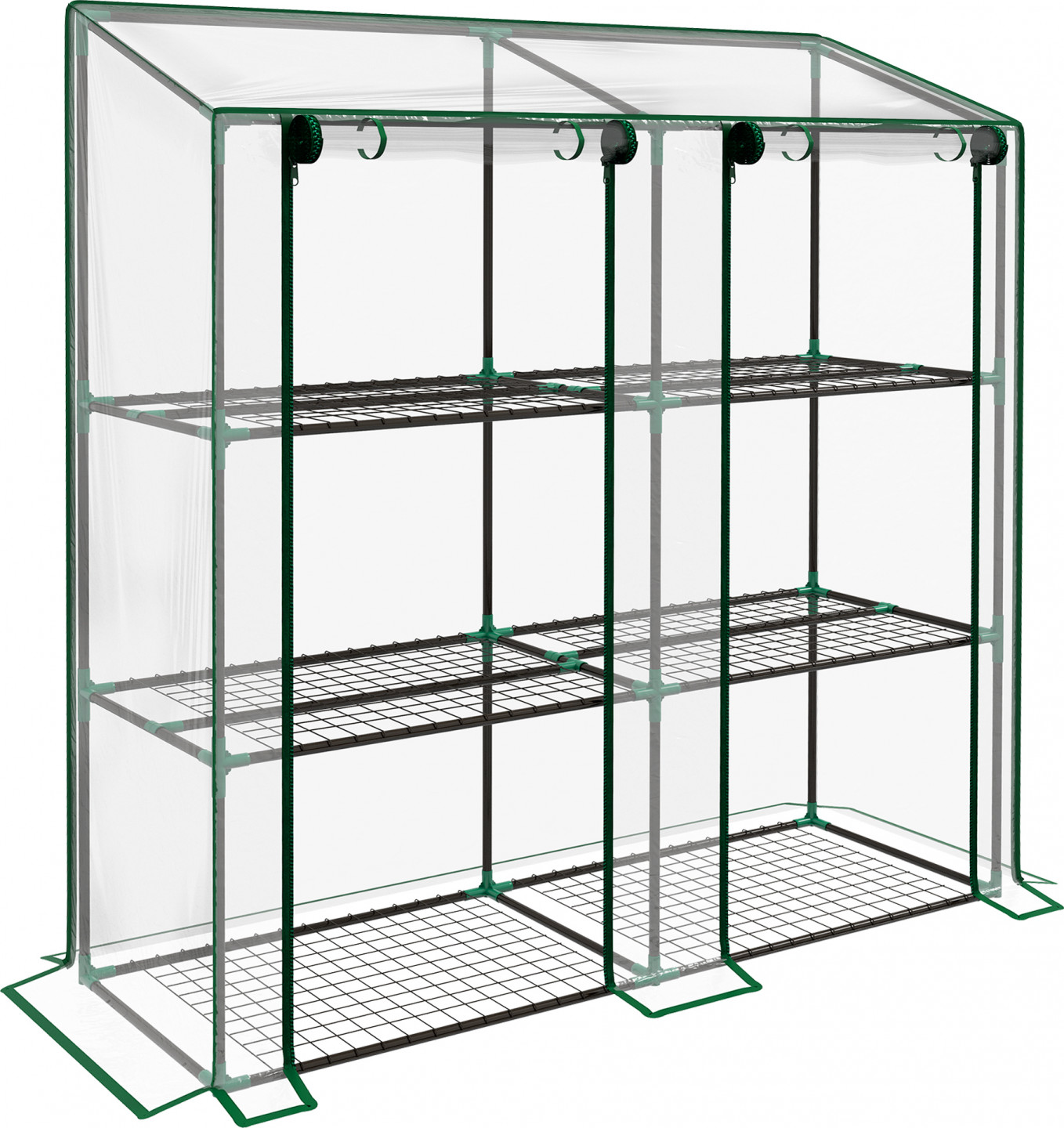 - Venkovní zahradní skleník se dvěma rolovacími dveřmi, které umožňují cirkulaci vzduchu a usnadňují péči o rostliny, otevírá a zavírá se pomocí zipu