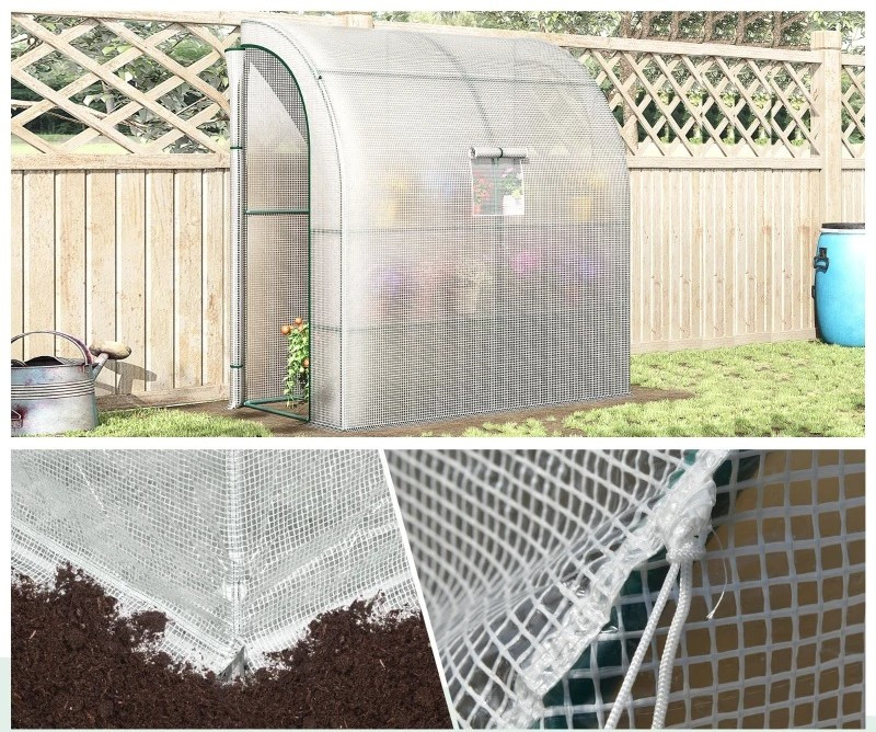 - PE cover protects from the weather, lets sunlight through and keeps the heat in
