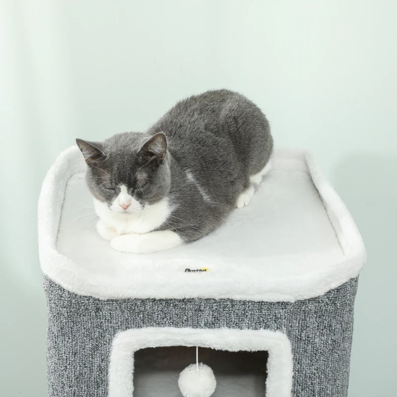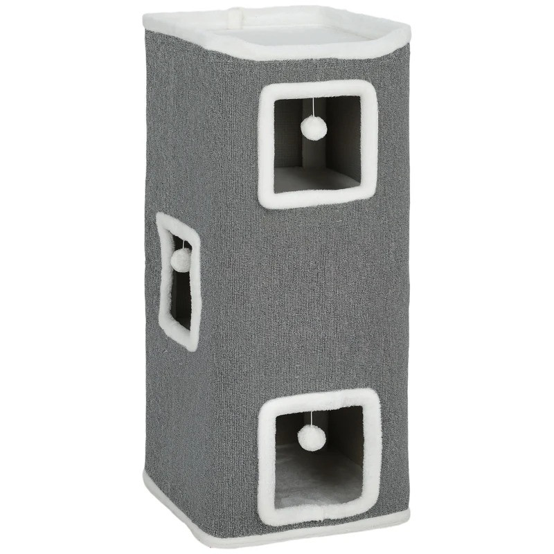Cítí se vaše kočky ve vašem malém bytě stísněně a ve stresu? Věž pro kočky promění malý prostor ve vzrušující vertikální hrací plochu. Každá kočka si může najít své soukromé útočiště na různých úrovních, což vede k menšímu počtu konfliktů a větší harmonii. Měkké plyšové okraje na horním lůžku a u všech vchodů usnadňují vstup, takže vaše kočky mohou bezpečně prozkoumávat své nové území a vnášet do domu radost a klid.