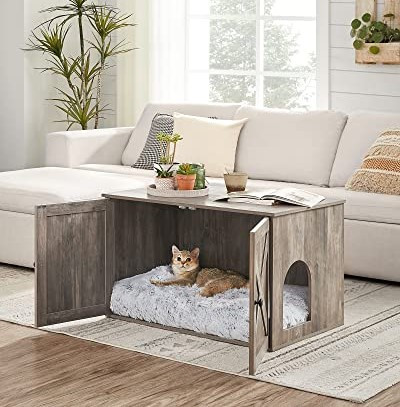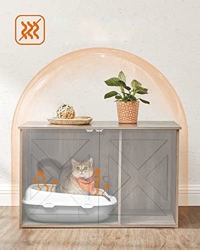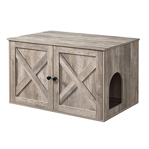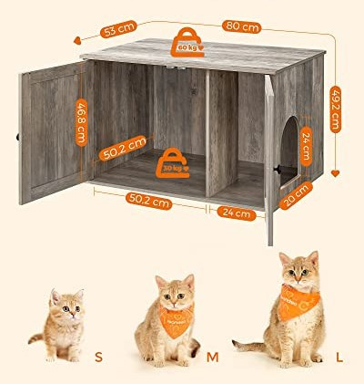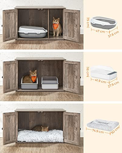 Díky svému rustikálnímu stylu a elegantním dvířkům od stodoly se tento zásobník pro kočky snadno hodí kamkoliv. Díky uzavřené konstrukci poskytuje soukromé místo, kde se vaše kočka cítí bezpečně a vytváří méně nepořádku. Můžete také odstranit přepážku a zvětšit plochu na 74,9 x 50 x 46 cm.