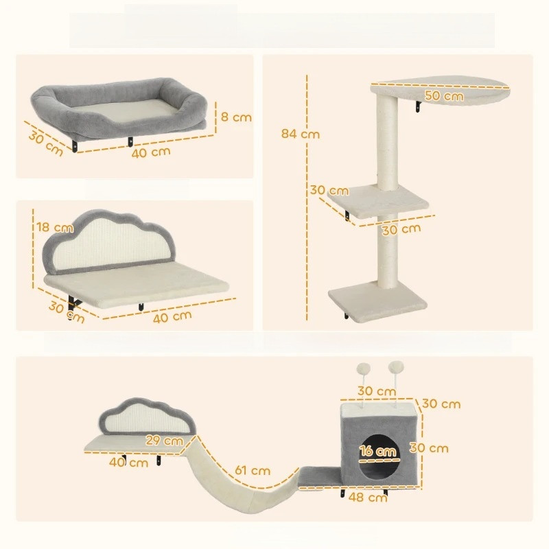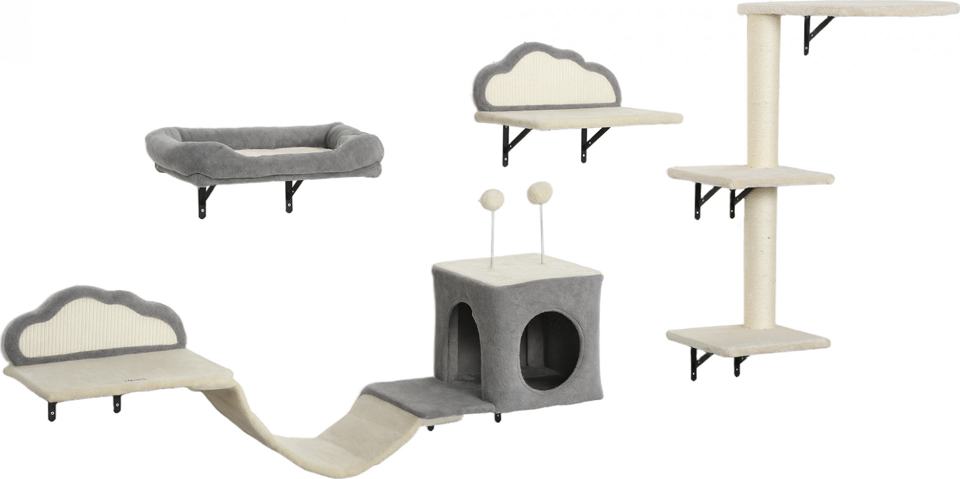 Jste otrávení, protože vám dochází místo pro vaše kočičí štěstí? Nepořádek v domácnosti způsobuje neklid vám i vašemu kotěti. Sada prolézaček pro kočky promění vaši stěnu v bezpečný, vícevrstvý hrací prostor. Tato robustní sada 4 v 1 vytvoří útulný lezecký a odpočinkový kout, uvolní váš obývací pokoj a obohatí život vaší kočky.