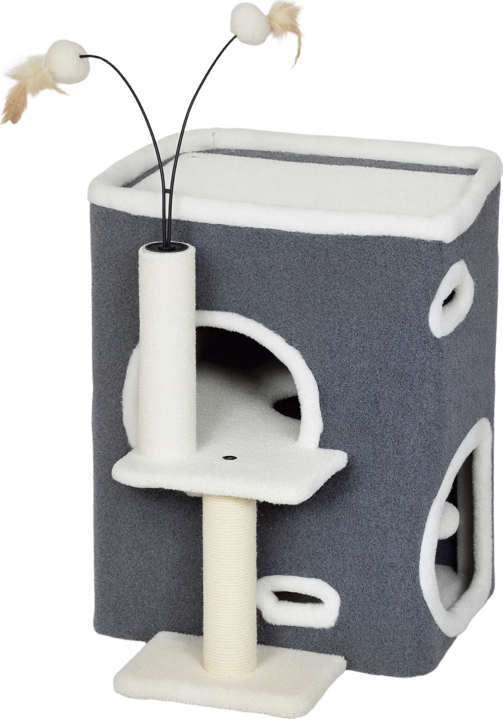 - Škrabadlo pro kočky je vybaveno dvoupatrovým domkem, který poskytuje soukromý prostor pro více koček