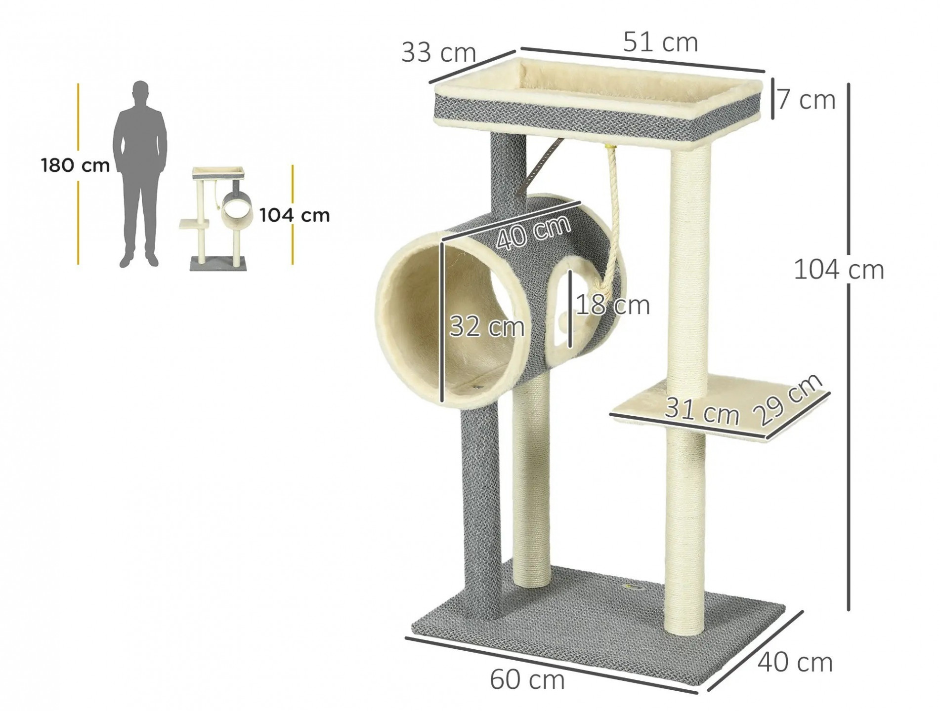 Poskytněte své kočce bezpečné místo na hraní s tímto stromem pro kočky! Tento interiérový kočičí strom má sloupy ze sisalového lana, závěsný míč a lano pro větší zábavu. Umožní vašim temperamentním kočkám brousit si drápky, aniž by poškodily váš nábytek. Toto škrabadlo nabízí vašim domácím mazlíčkům místo k odpočinku, škrábání a dalším činnostem, od odpočinku až po hraní.