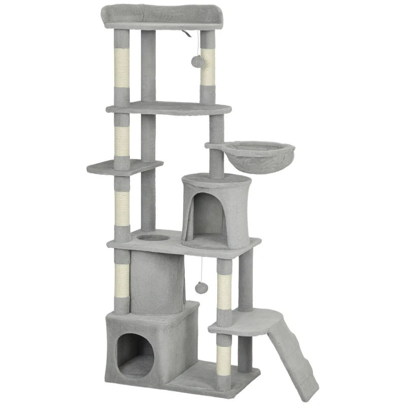 Škrabadlo pro kočky s jeskyní, 170 cm | světle šedé