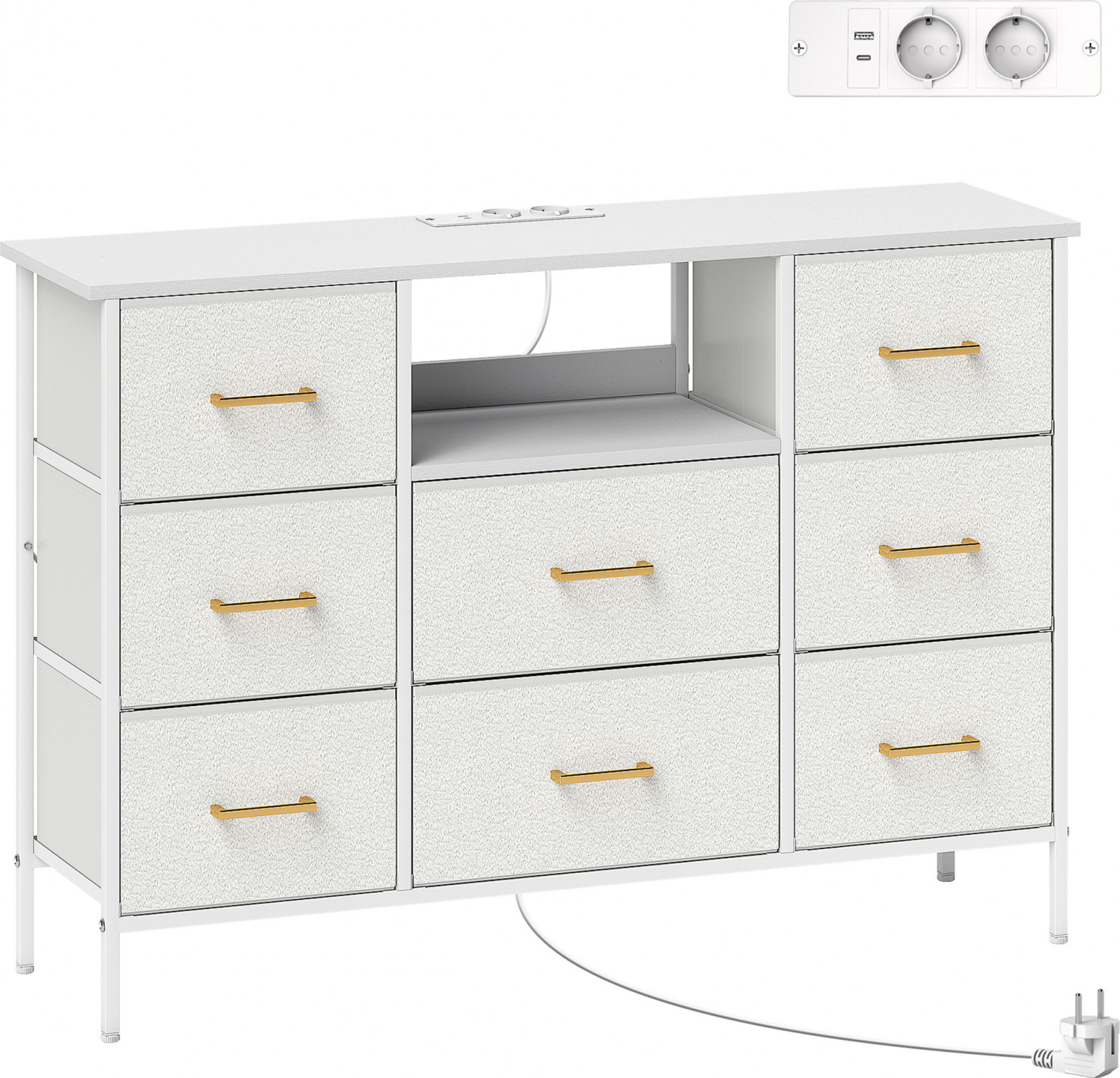 Komoda s 8 látkovými zásuvkami | krémově bílá
