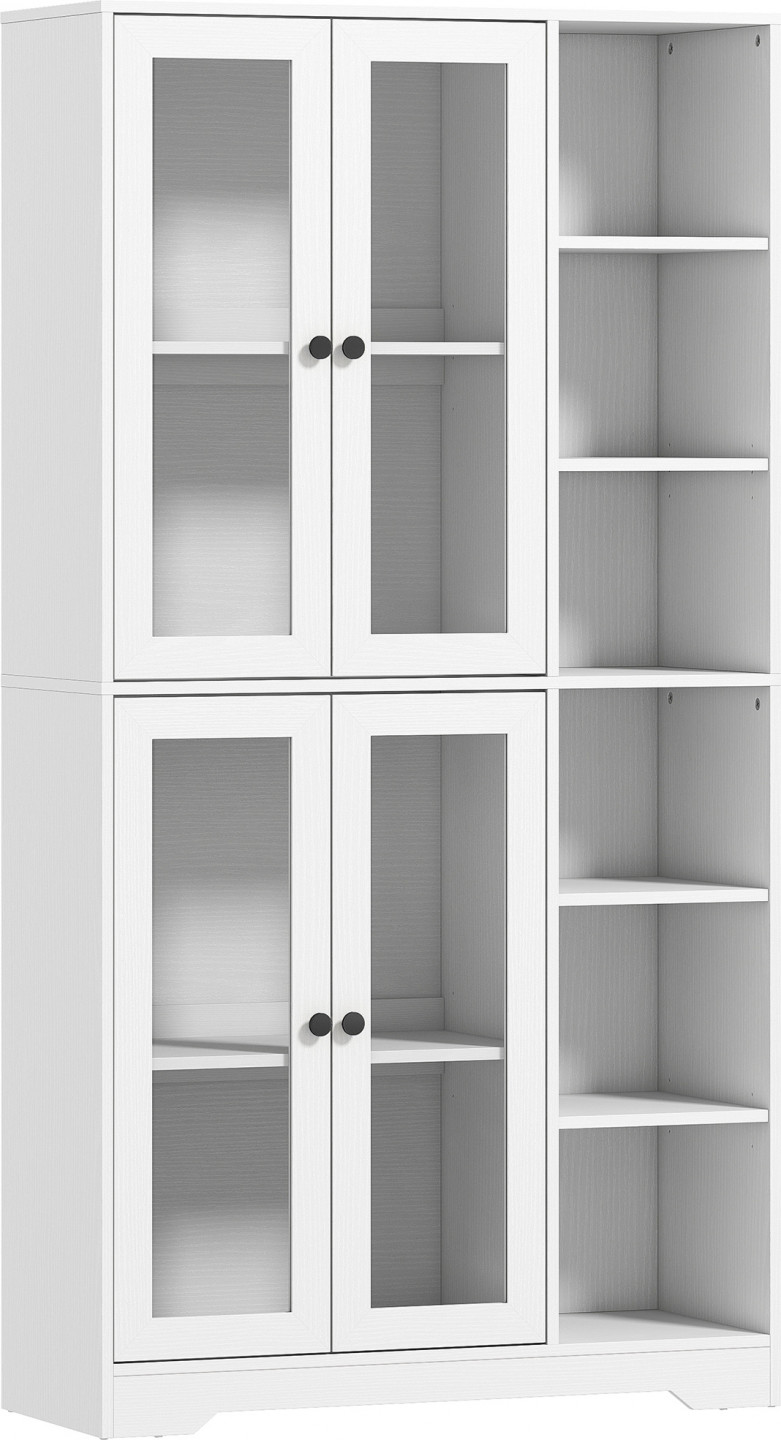 Už vás nebaví otravovat se chaosem v kuchyni a nesourodým nábytkem? Neustálé hledání místa může způsobit, že váš domov bude vypadat chaoticky a neútulně. Tato robustní kuchyňská skříňka s velkým úložným prostorem a ochranou proti převrácení zajišťuje bezpečnost, zatímco elegantní bílý povrch ve vzhledu dřeva a skleněná dvířka vysoké skříňky účinně vystavují vaše oblíbené předměty a vytvářejí příjemnou, stylovou atmosféru kuchyně.