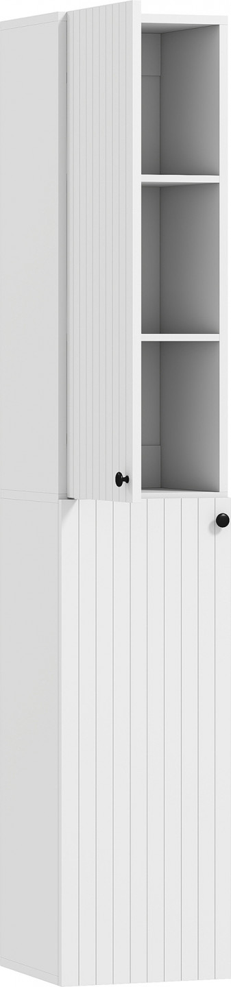 Proměňte svou přeplněnou koupelnu v relaxační oázu díky štíhlé vysoké skříňce. Máte problémy s místem? Nástěnné provedení optimálně využívá vertikální prostor a uvolňuje podlahu. Díky pantům s tichým dovíráním zůstane váš prostor tichý a do dvou skříněk, z nichž každá má tři přihrádky, pohodlně uložíte všechny potřebné věci. Tento elegantní úložný modul, který se skvěle hodí do koupelny nebo kuchyně, v sobě spojuje moderní design a funkčnost, které vám zpříjemní každodenní život.