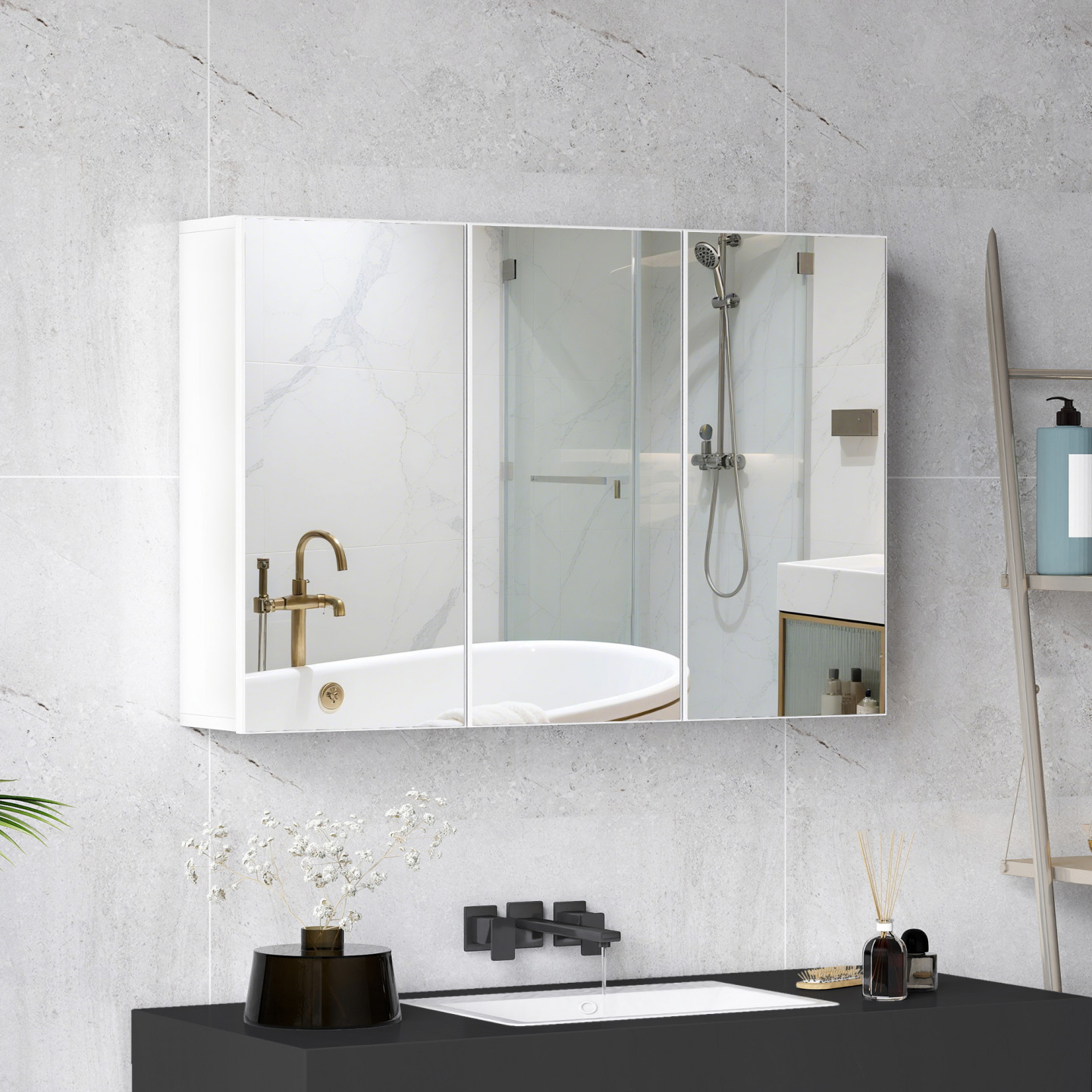 - Tři zrcadlové dveře úložné skříňky opticky zvětší vaši koupelnu a místnost se zdá být světlejší.
