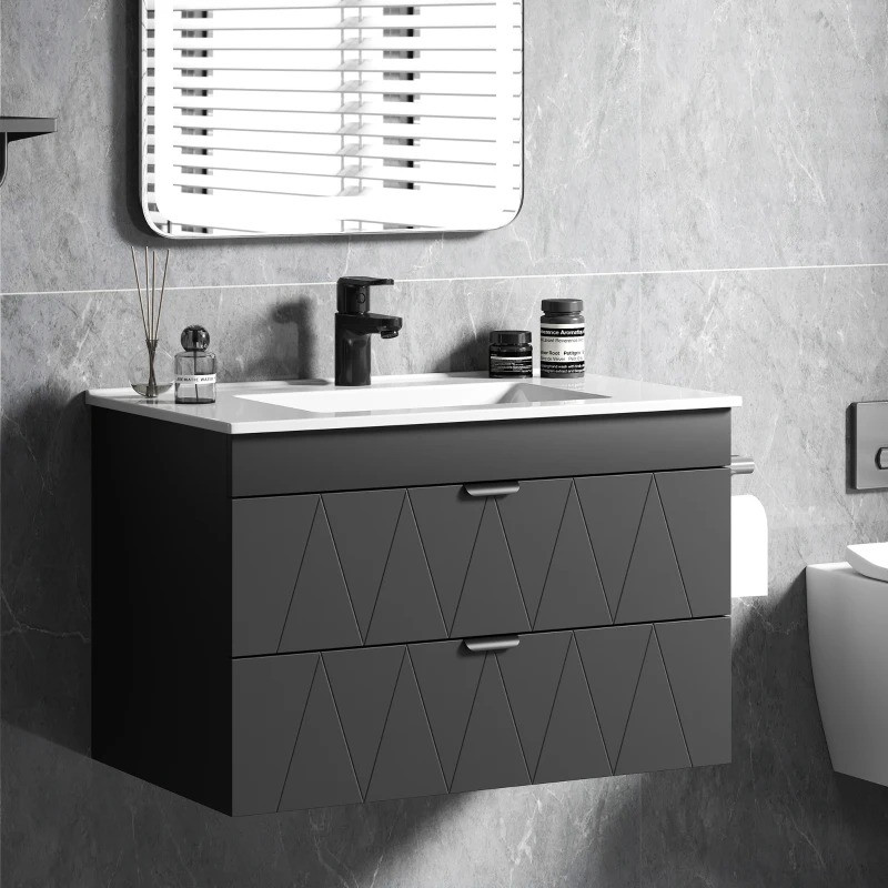 Proměňte svou koupelnu v elegantní útočiště díky závěsnému umyvadlu. Matně černá povrchová úprava a keramická skříňka nabízejí moderní eleganci, zatímco závěsné provedení šetří místo - ideální pro menší obytné prostory. Dvě velké zásuvky v koupelnové skříňce udržují pořádek a organizovanost. Užijte si pohodlí bez námahy a styl, který díky snadnému přístupu a propracované estetice obohatí vaše každodenní rutiny.