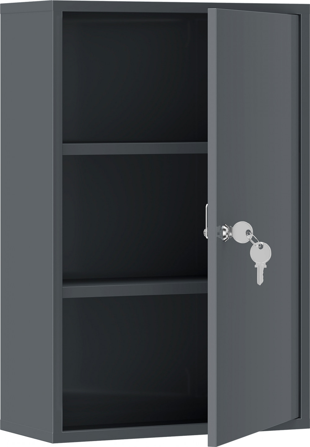 Uzamykatelná kovová lékárnička se 3 přihrádkami 40 x 18 x 60 cm | šedá