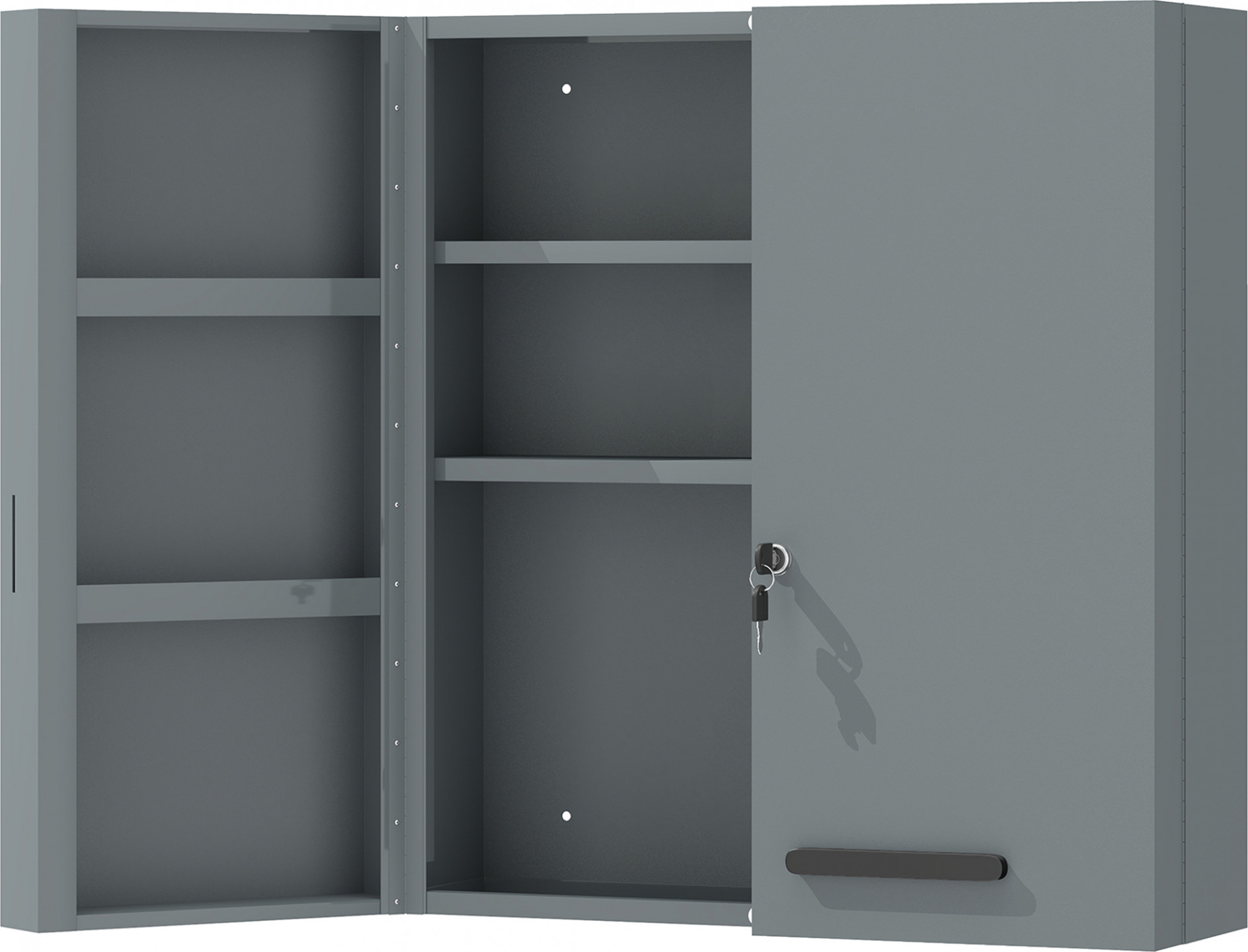 Uzamykatelná lékárnička se 2 dvířky a 6 policemi | šedá