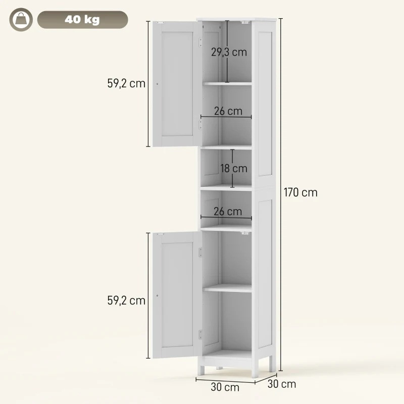 Vysoká koupelnová skříňka 30 x 30 x 170 cm | bílá