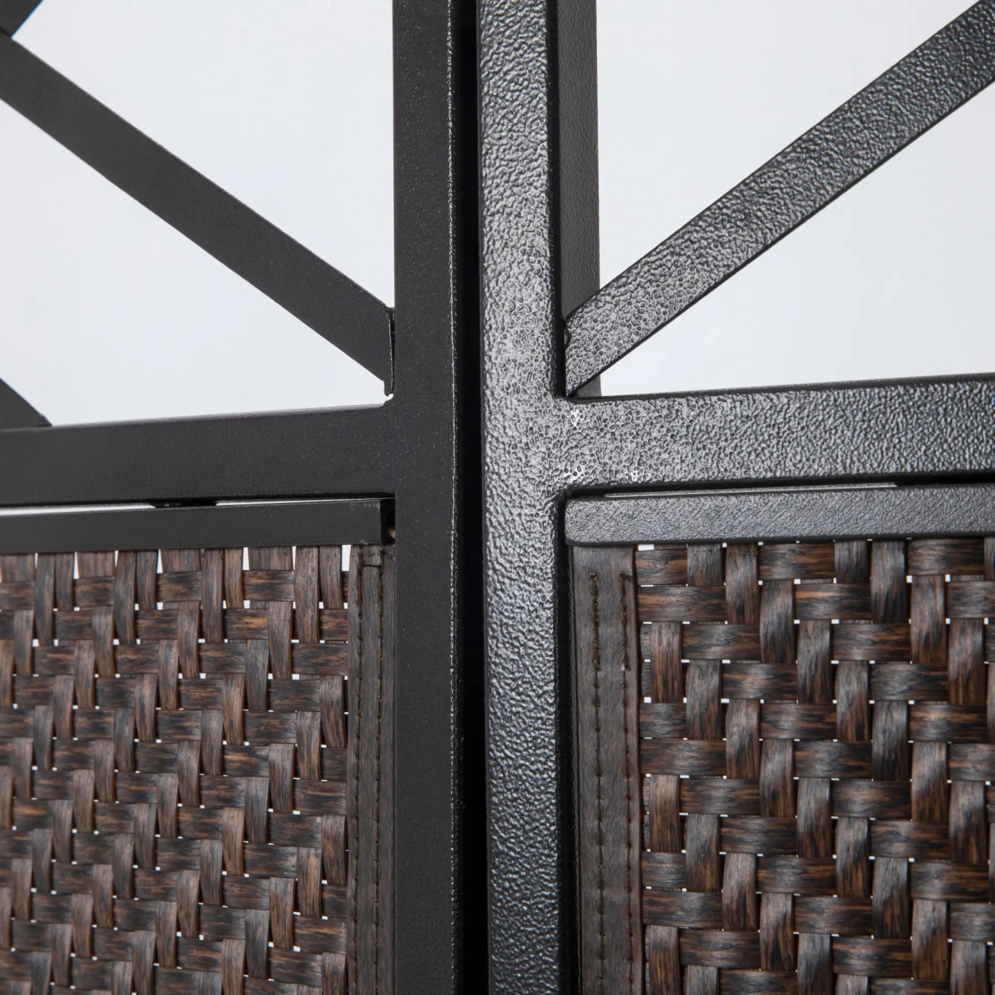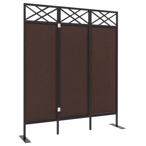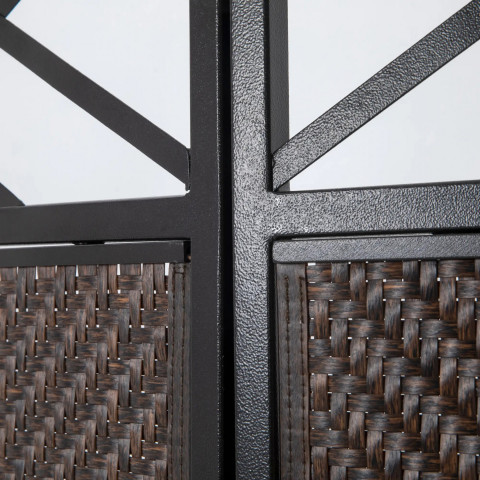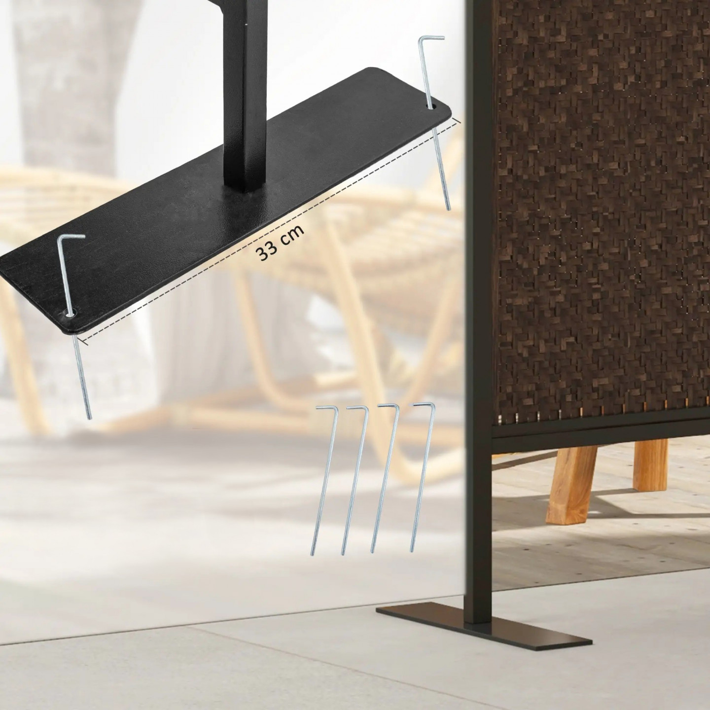 Tento elegantní třídílný rozdělovač poskytuje okamžité soukromí a má všestranné využití. Snadno se skládá a díky hladkým kovovým pantům se snadno přemisťuje a skladuje. Je vyroben z ručně tkaného PE ratanu a potažené oceli a dodává venkovním prostorám přírodní nádech. Součástí balení jsou zemní kotvy pro použití na trávníku a široké nohy zajišťují stabilitu. Funkční a krásná dekorace do zahrady.