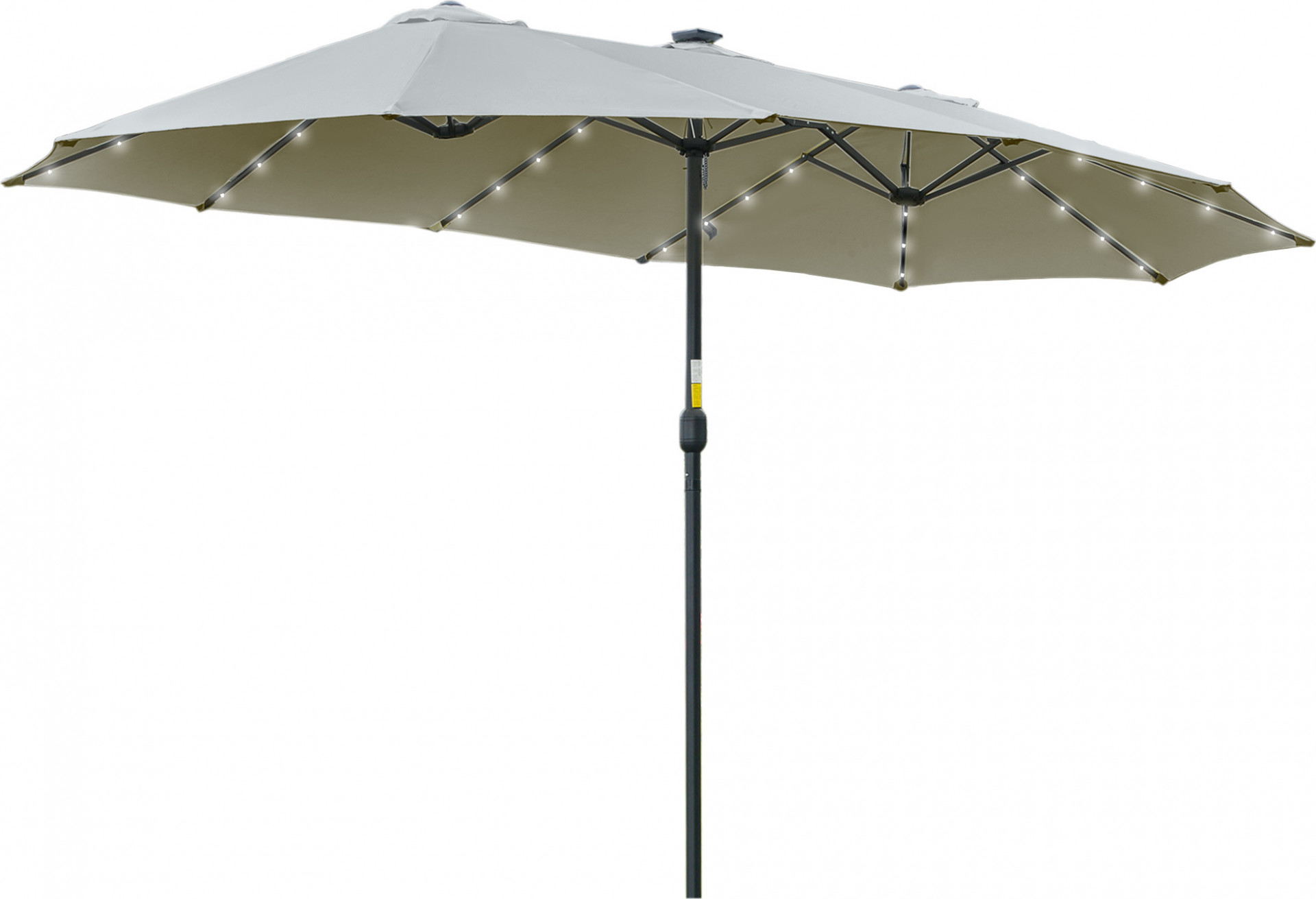 Dvojitý slunečník s LED solárním světlem 4,5 m | černý + světle šedý