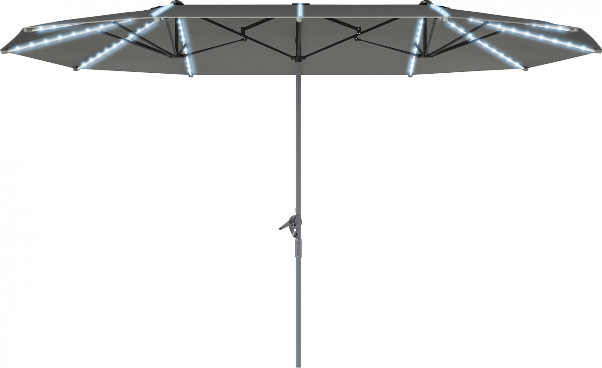 Dvojitý slunečník se solárními LED světly, 451 x 267 cm | tmavě šedý