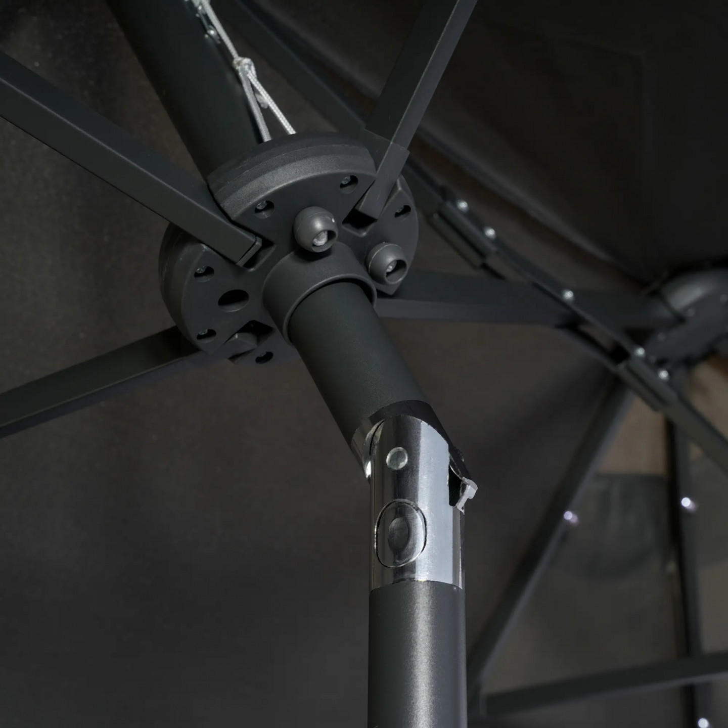 Rádi si čtete venku nebo si užíváte piknik v letním vánku? Tento velký slunečník nejenže ochrání vaše hosty a zahradní nábytek před sluncem, ale také se podle potřeby nakloní a přizpůsobí poloze slunce. Solární panel se nabíjí a poskytuje dostatek energie pro zabudované LED diody, takže vaše zahradní party může nerušeně pokračovat i po západu slunce.