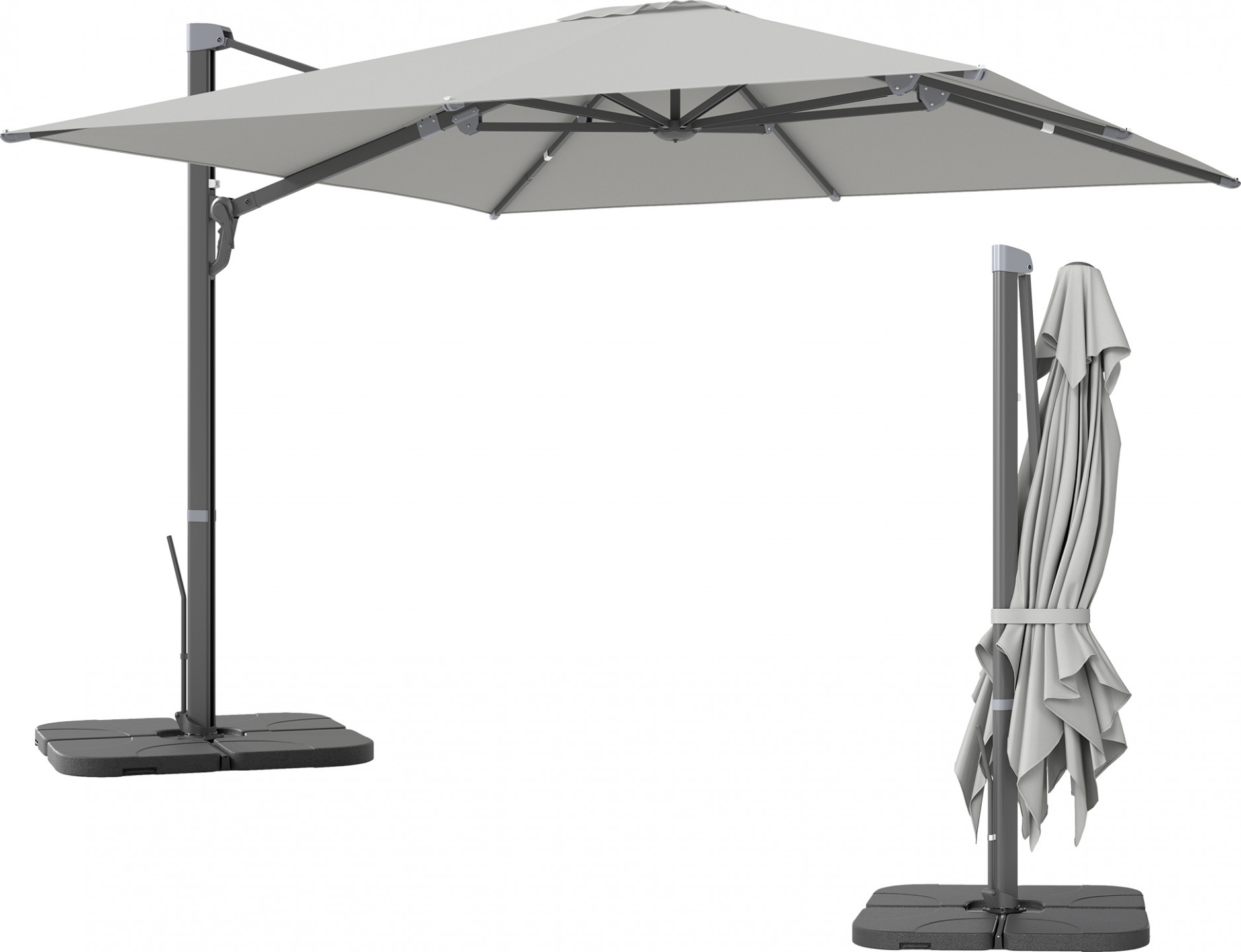 Hliníkový konzolový slunečník 3x3 m | světle šedý