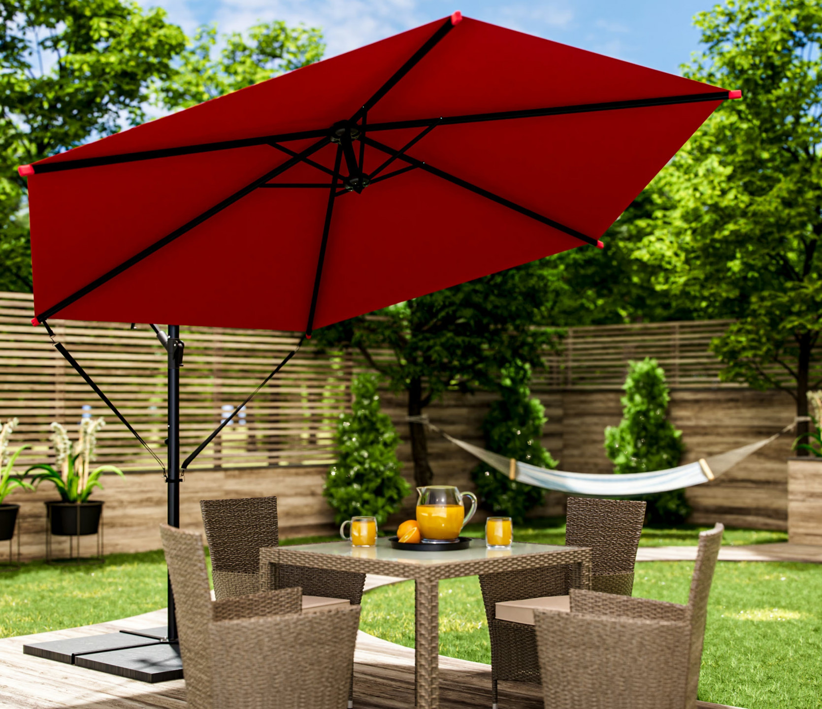 Hliníkový slunečník se stojanem a klikou | červený