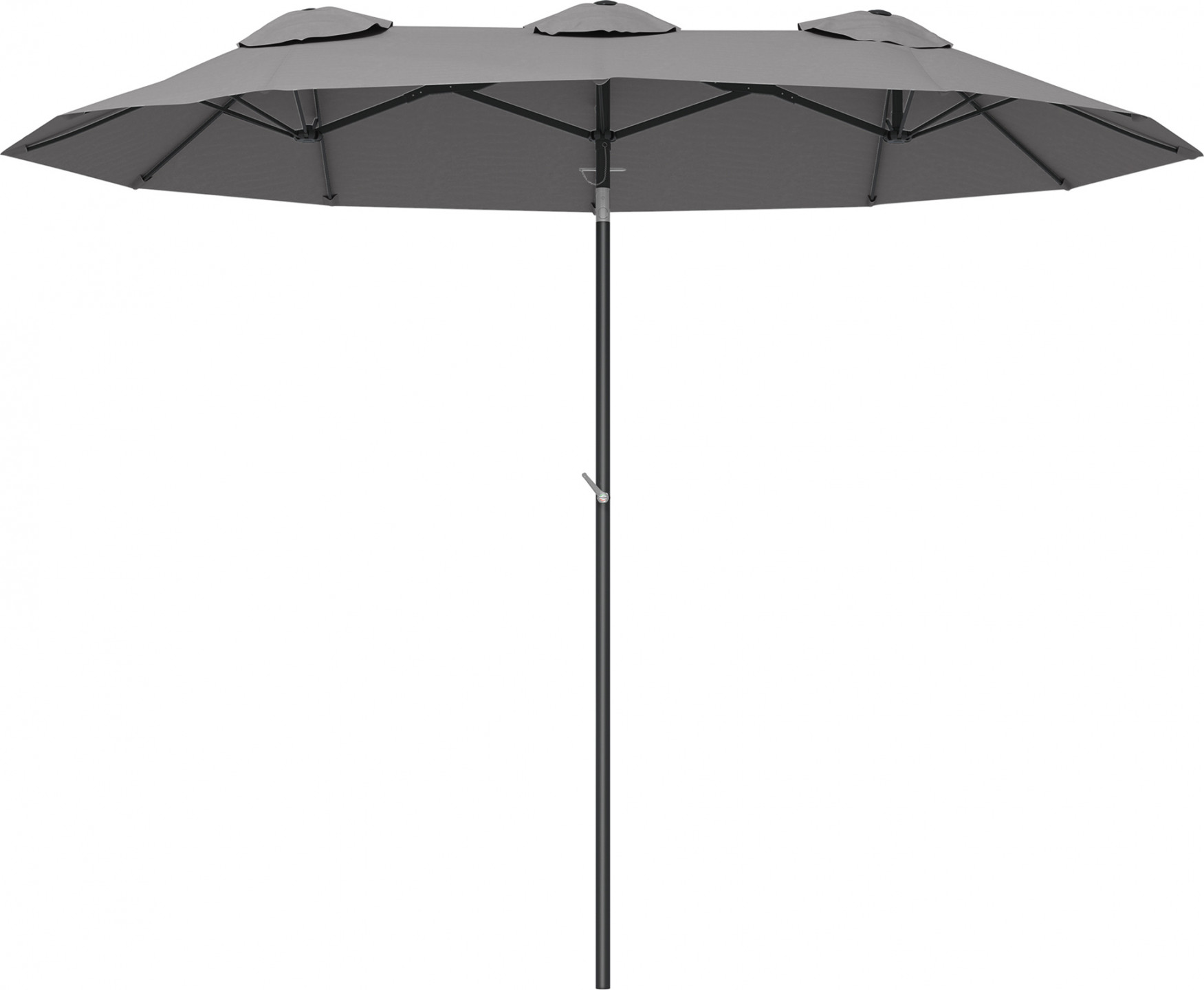 Proměňte svou terasu ve svěží stinnou oázu, kde můžete uniknout každodennímu shonu a vychutnat si osvěžující nápoj. Tento velký dvojitý slunečník vám nabídne dostatek stínu a vytvoří chladivé útočiště na vašem prahu. Slunečník pohodlně otevřete pomocí ruční kliky a úhel nastavíte pouhým pohybem zápěstí. Robustní kryt, ocelová tyč a 12 pevných vzpěr zajišťují nekompromisní stabilitu.