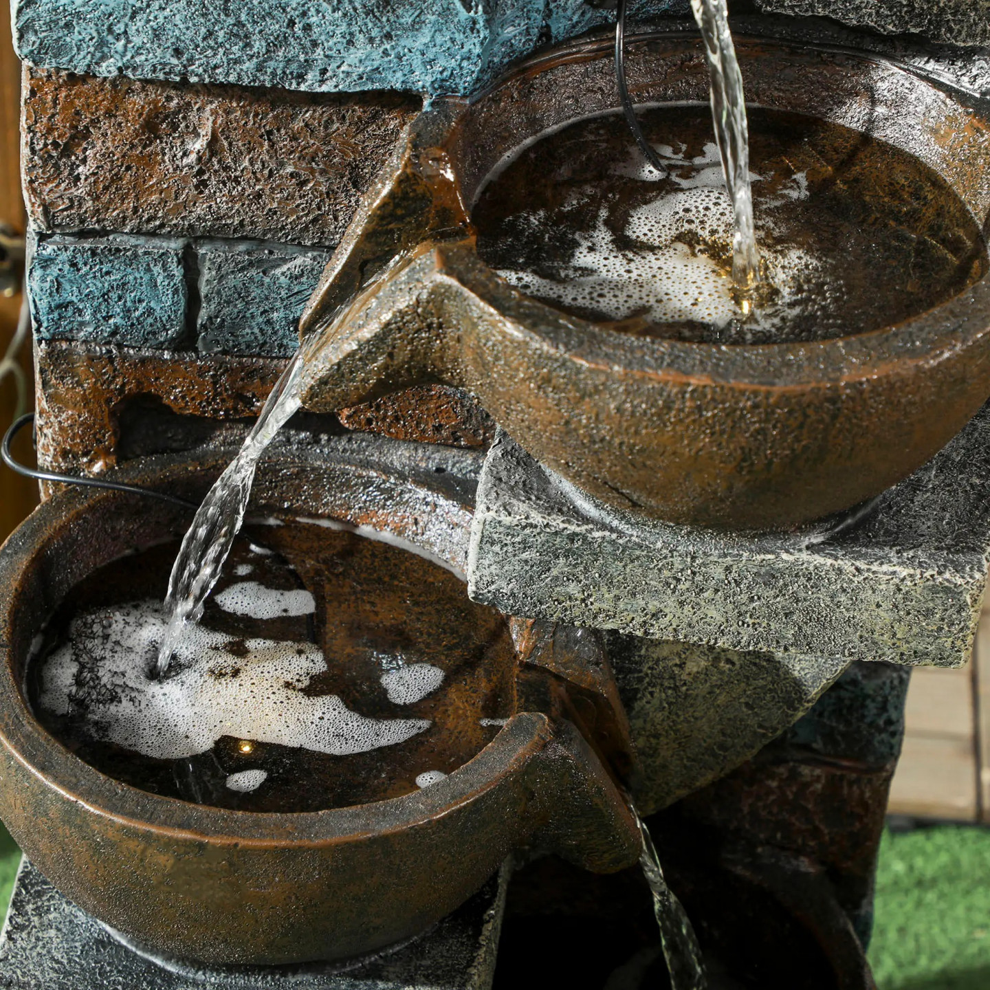 S touto pětistupňovou kaskádovou fontánou dodáte své zahradě živý nádech plný charakteru. Fontána cihlového vzhledu dokonale zapadne do atmosféry každé zahrady. Dodávané čerpadlo zajišťuje autonomní cirkulaci vody, čímž je zajištěn stálý proud vlnící se vody. Součástí je také solárně napájené LED osvětlení. Jemné šplouchání má neuvěřitelně uklidňující účinek a promění vaši zahradu v malou oázu relaxace.