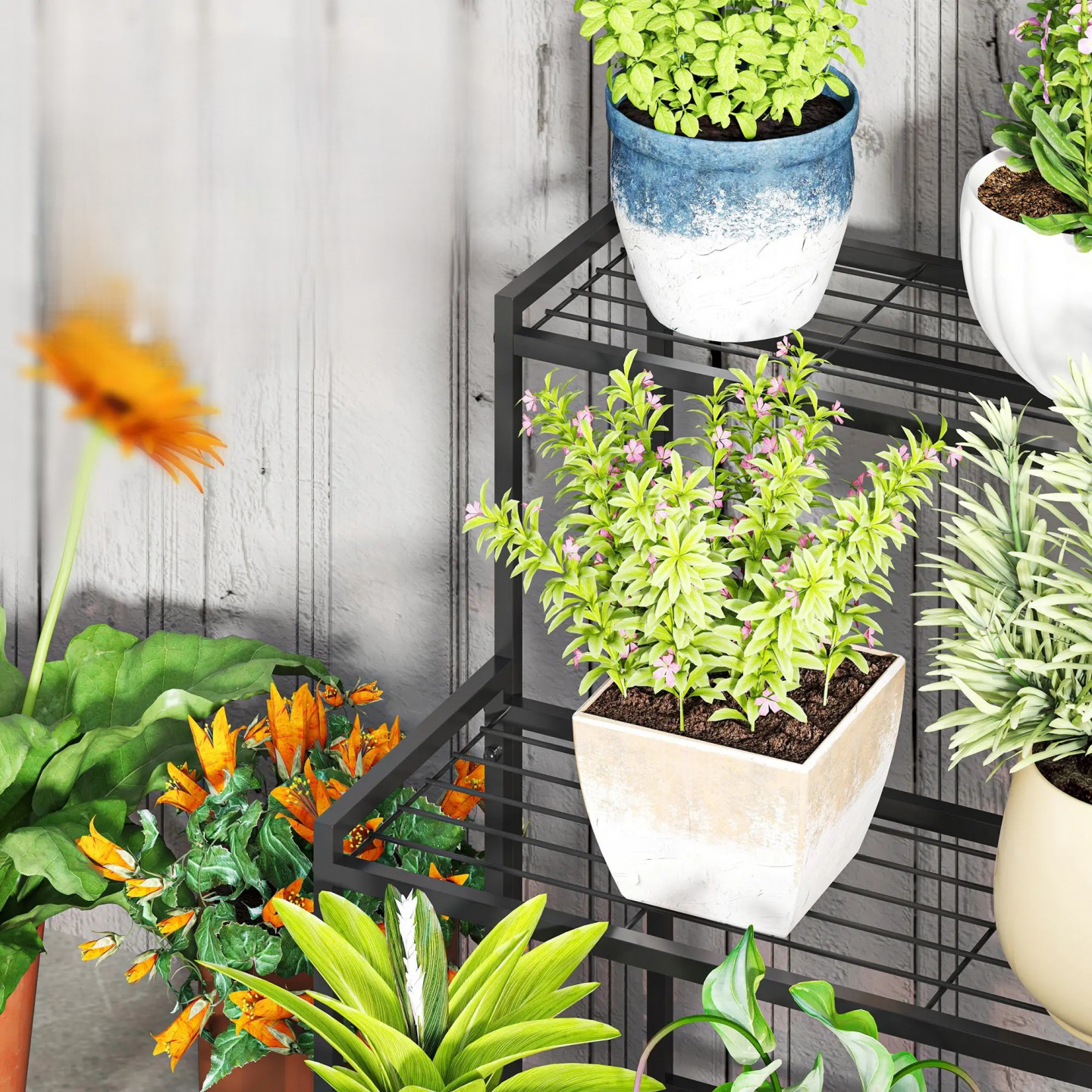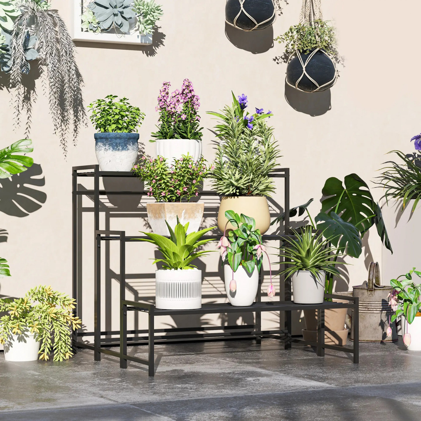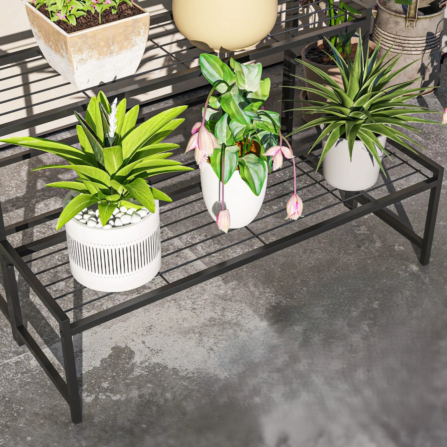 Třístupňová konstrukce tohoto stojanu na květiny zaručuje optimální oslunění každé rostliny a je doplněna moderním, elegantním designem. Mřížové základny stupňů pro rostliny navíc podporují cirkulaci vzduchu a odtok vody. Stojan na květiny je vyroben z nerezavějícího kovu s práškovým nástřikem, je vhodný pro vnitřní i venkovní použití a je ideální pro rostliny, knihy nebo dekorativní předměty.