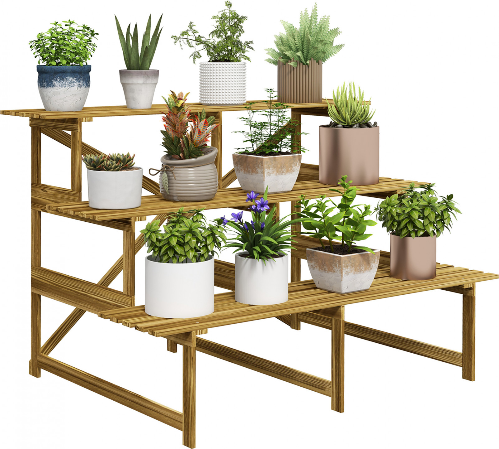 Naše třístupňové schody pro rostliny jsou vyrobeny z jedlového dřeva odolného proti povětrnostním vlivům a jsou vhodné na balkony, terasy a zahrady. Tři stupně jsou umístěny v různých výškách a poskytují dostatek prostoru pro vaše květináče a zároveň vytvářejí krásný, prostorný vzhled. Náš stojan na rostliny má obzvláště vysokou nosnost, což znamená, že na něj lze umístit i těžší květináče.