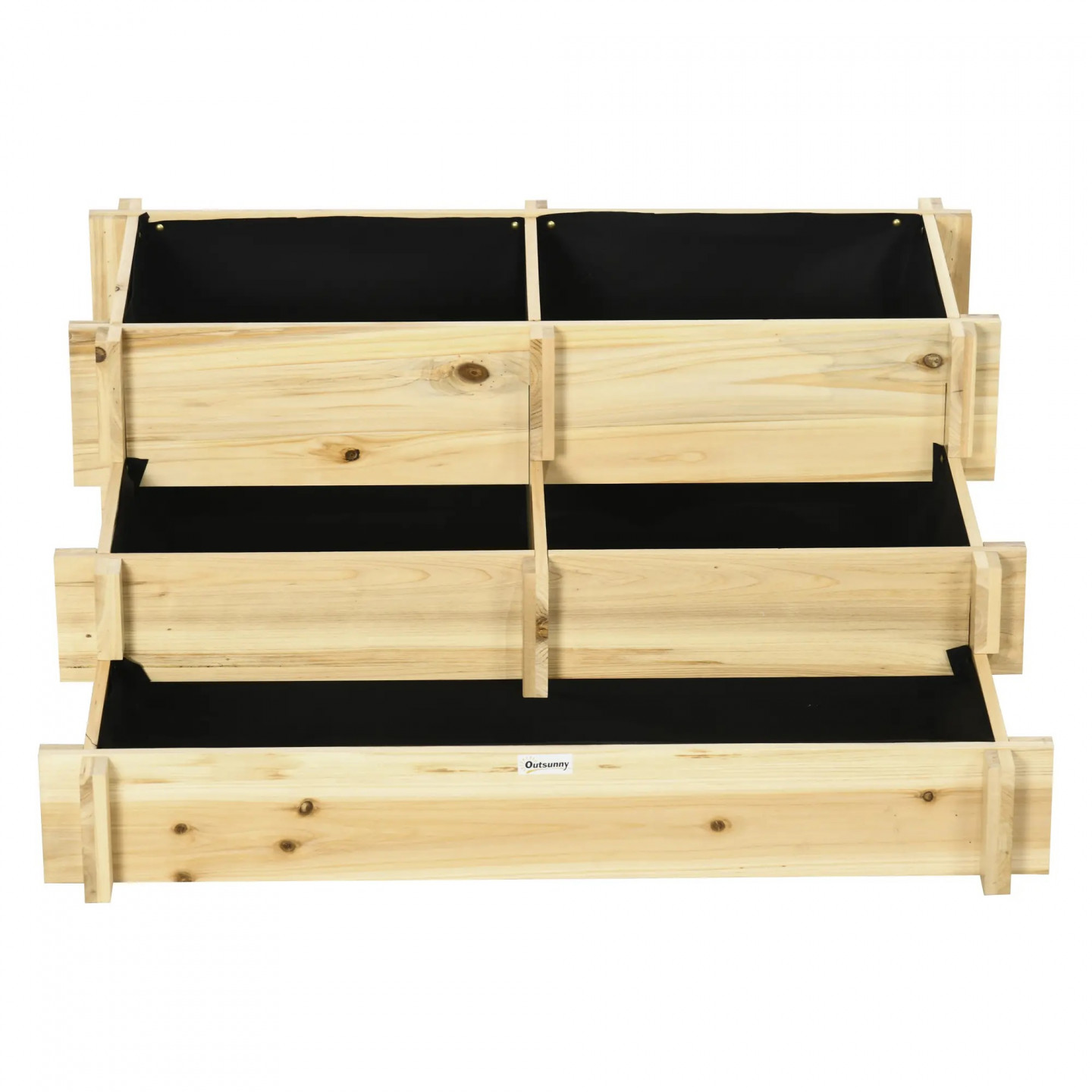 Tento speciální vyvýšený záhon zaujme pěti oddělenými oddíly pro rostliny a třemi patry, takže vedle sebe mohou růst a prospívat nejrůznější rostliny. Vyvýšený rám chrání zeleň před zvířaty a poskytuje prostor pro velké kořeny. Obložení dna s drenážním otvorem zabraňuje přemokření a erozi půdy v květináčích. Díky zásuvnému provedení lze vyvýšený záhon snadno a rychle sestavit.