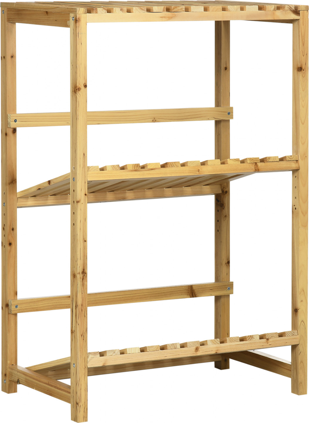 S tímto stojanem na přepravky na nápoj můžete udržovat svůj venkovní prostor čistý a uklizený. Je ideální pro ukládání přepravek s nápoji. Regál nejenže vypadá moderně, ale je také vyroben z odolného, dlouhotrvajícího a lakovaného masivního dřeva. Tento regál na přepravky s nápoji je dokonalým řešením pro skladování vašich nápojů.