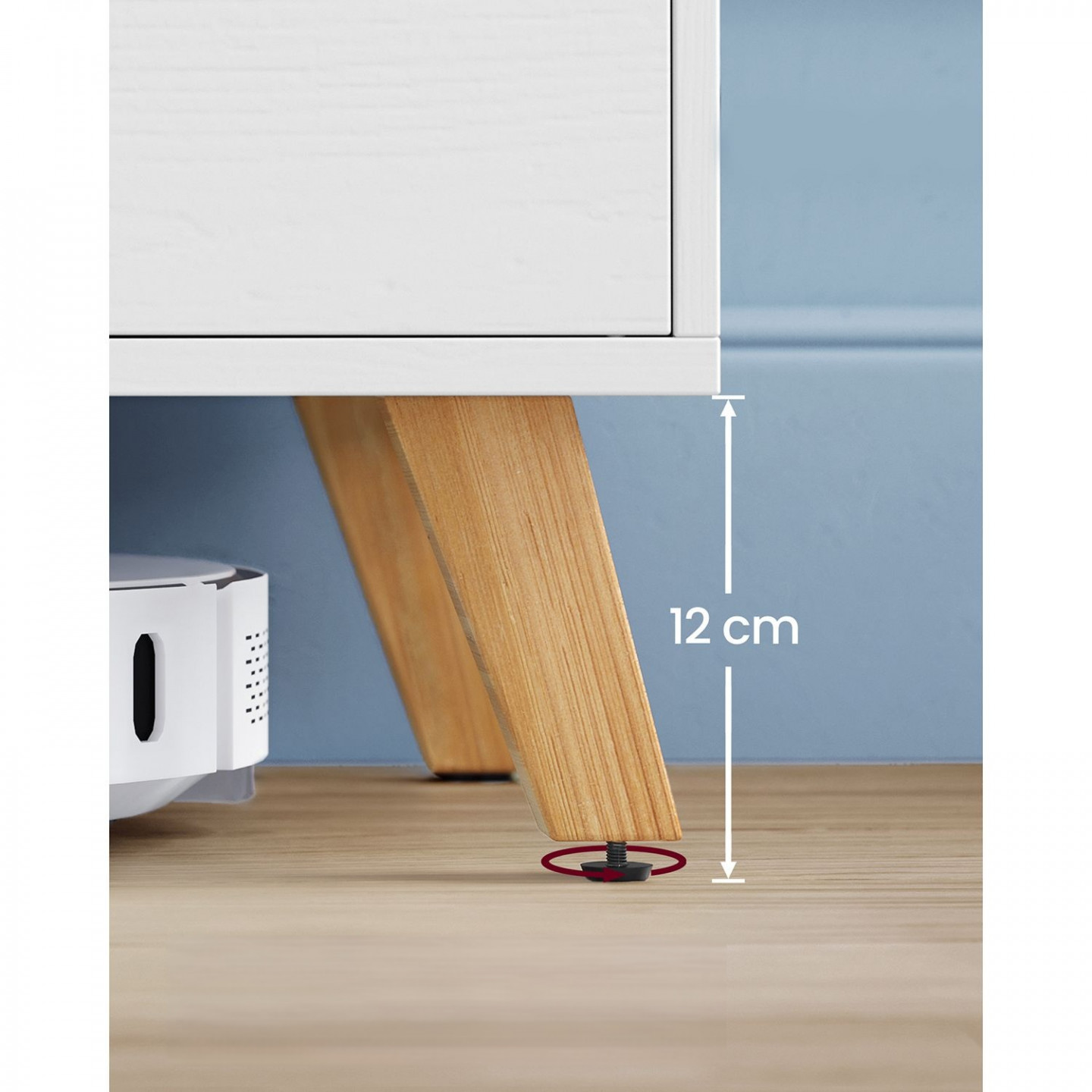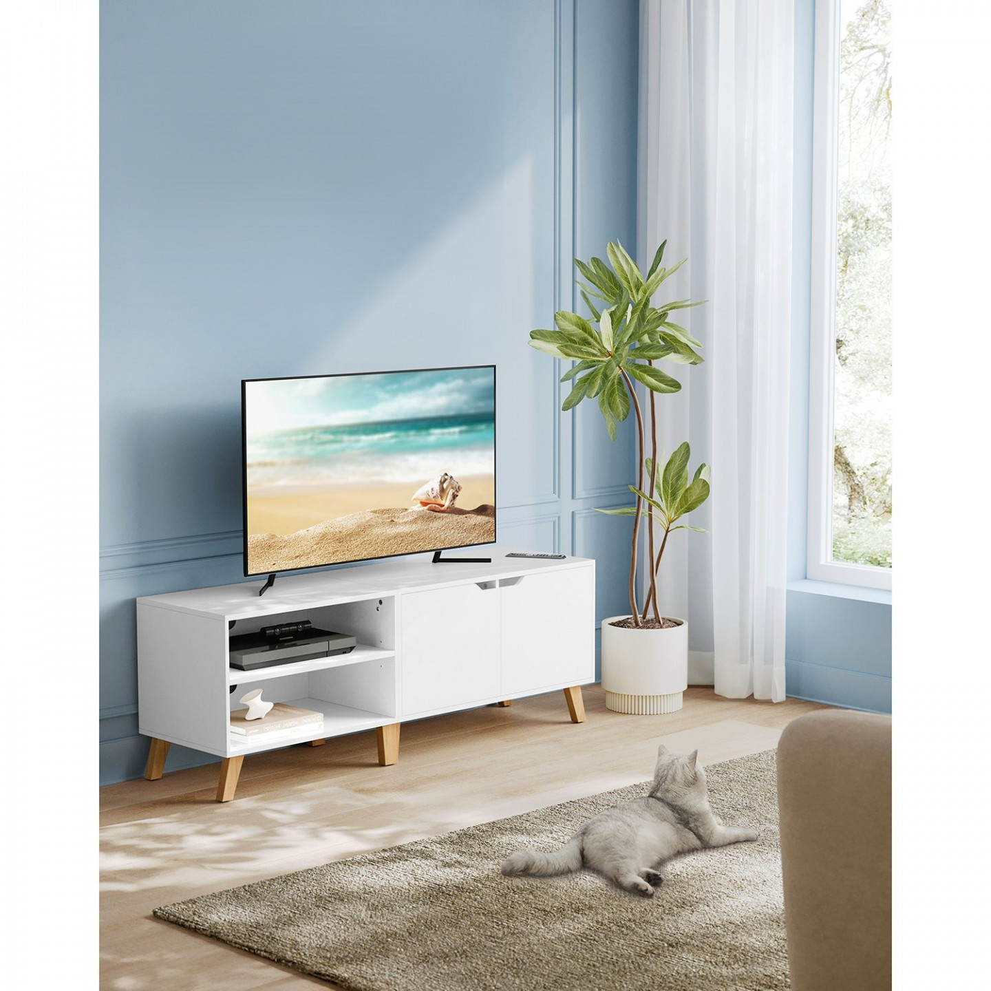 Moderní televizní stůl se vyznačuje jednoduchým designem a stabilním zpracováním. Poskytuje dostatek prostoru pro váš televizor a technické vybavení. Tento stojan pojme televizory s úhlopříčkou až 60 palců. Umístěte své konzole a krabice do 2 otevřených polic a uložte svá DVD za dveřmi.
