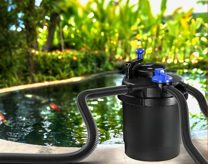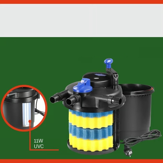 Tlakový filtr do jezírka s čerpadlem zajišťuje stabilní biologickou rovnováhu v jezírku a zlepšuje kvalitu vody. Toho je dosaženo kombinací filtračních houbiček a UV-C technologie . Tím se mění terciární a kvartérní struktury řasových proteinů. Řasy se shlukují a tvoří větší částice, které lze snadno odstranit z vodního cyklu mechanickou filtrací v jezírku.