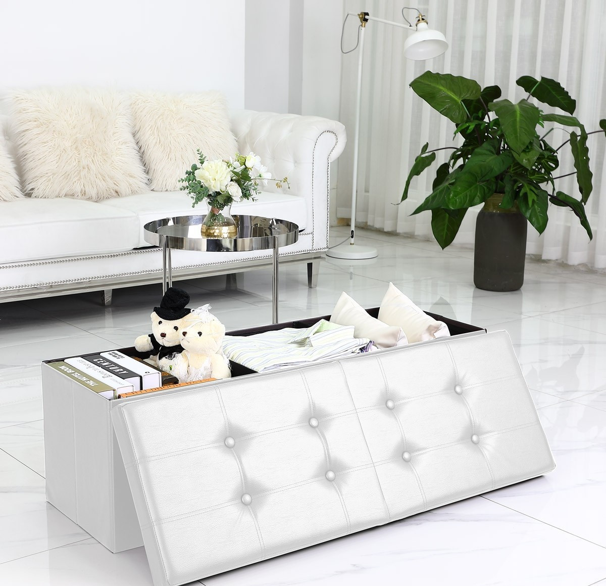 Čalúnená lavica s úložným priestorom 115 x 38 x 38 cm | biela