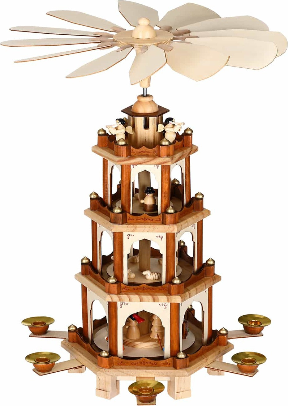 Vánoční pyramida XL 60×20×20 cm přinese do vašeho domova tradiční sváteční atmosféru. Elegantní dřevěný design a pohyblivé figurky rozzáří každý koutek a vytvoří kouzelnou vánoční dekoraci. Ideální pro stůl, komodu nebo parapet.
